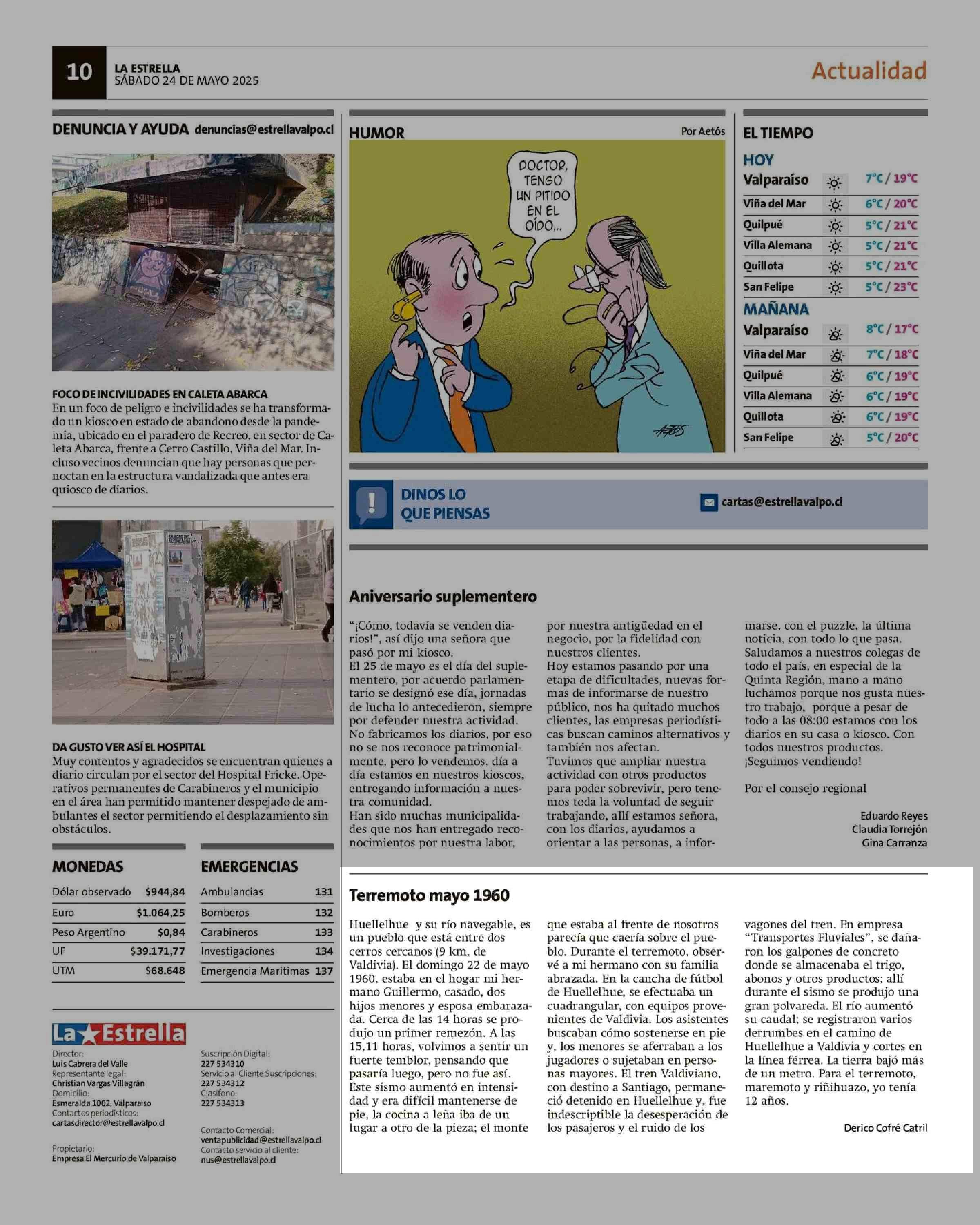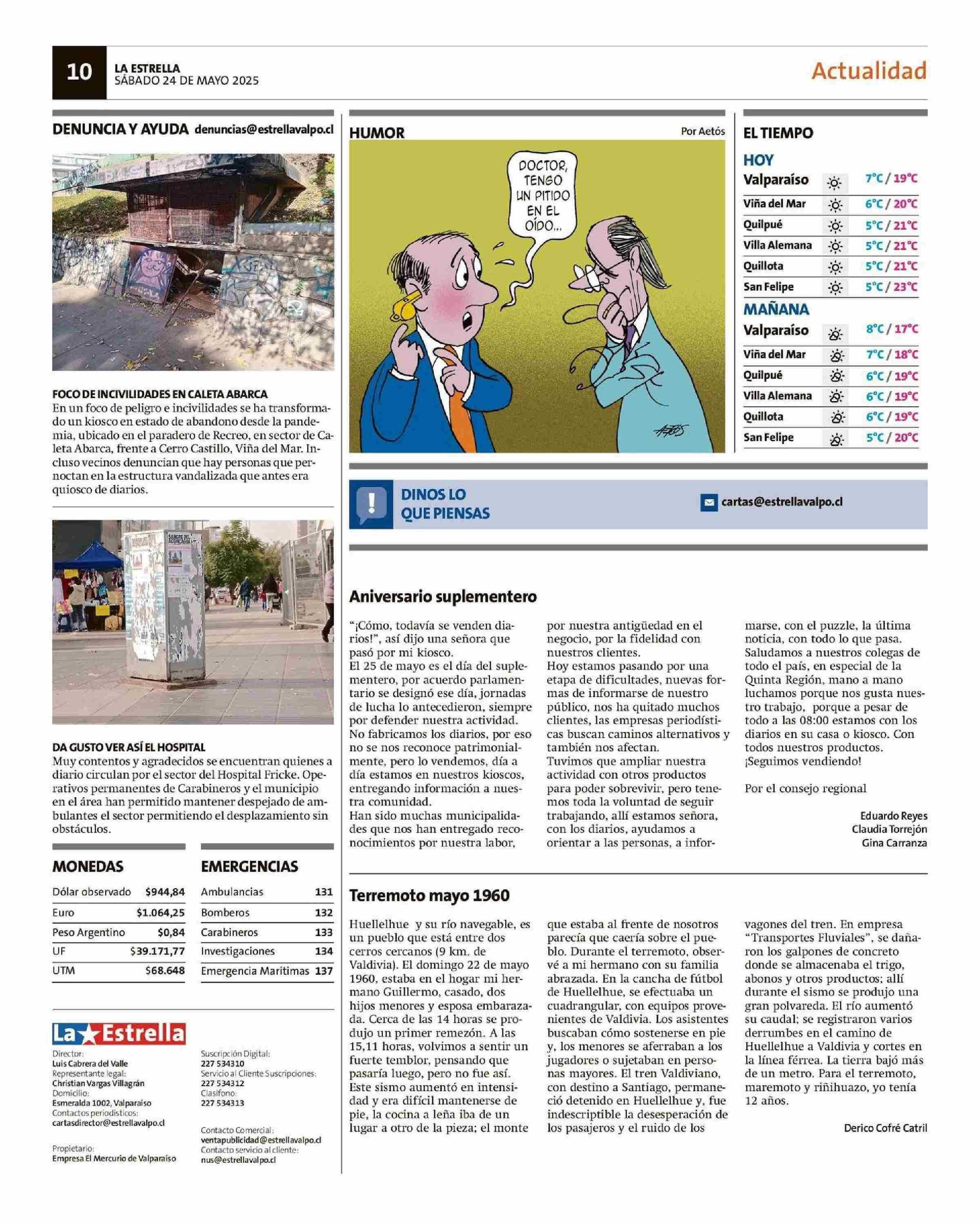 CARTAS: Terremoto mayo 1960 24-05-2025 La Estrella de Valparaíso |