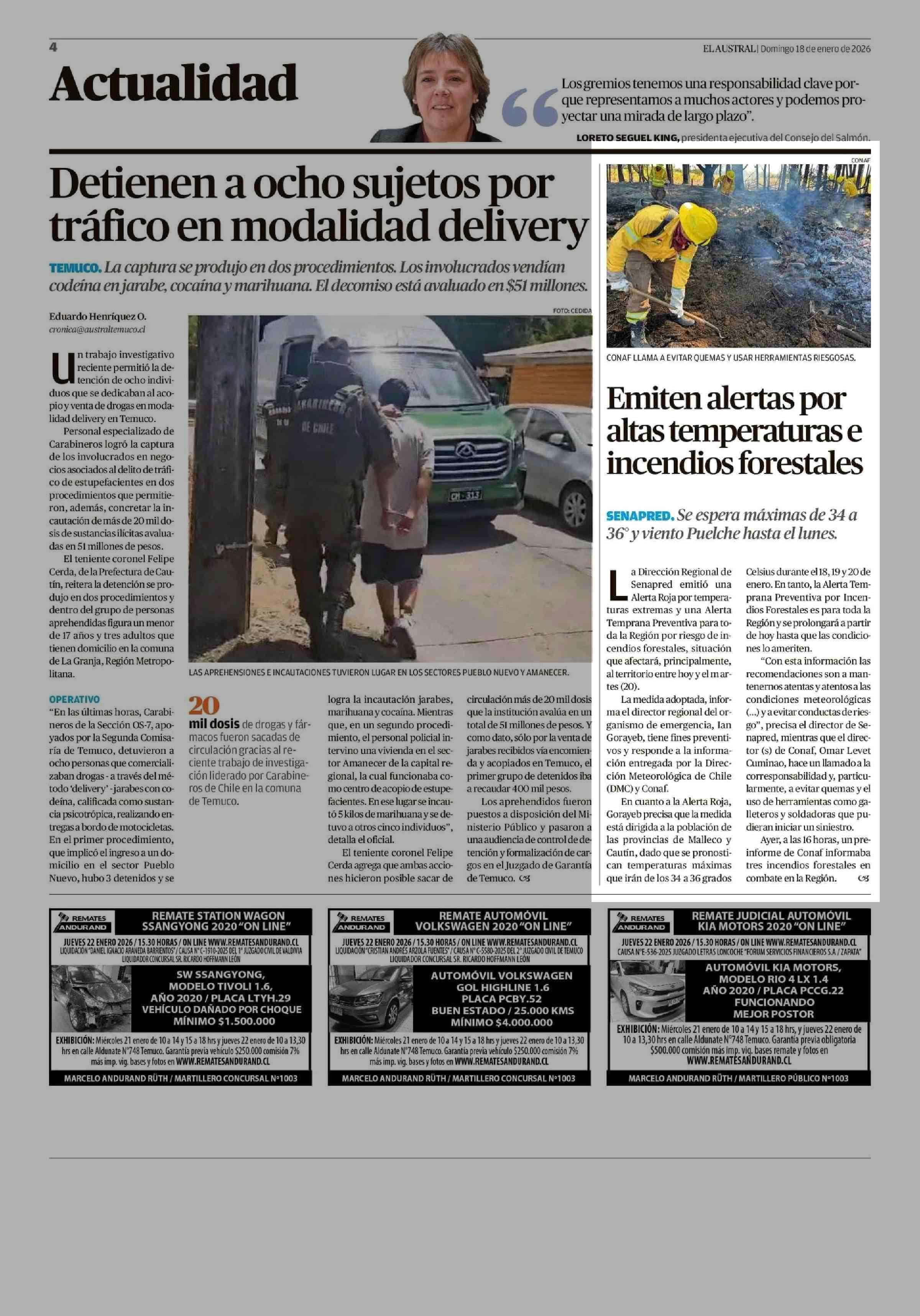 | Fecha: | 18-01-2026 | Sector: | Noticia general | Región: | Región de la Araucanía |