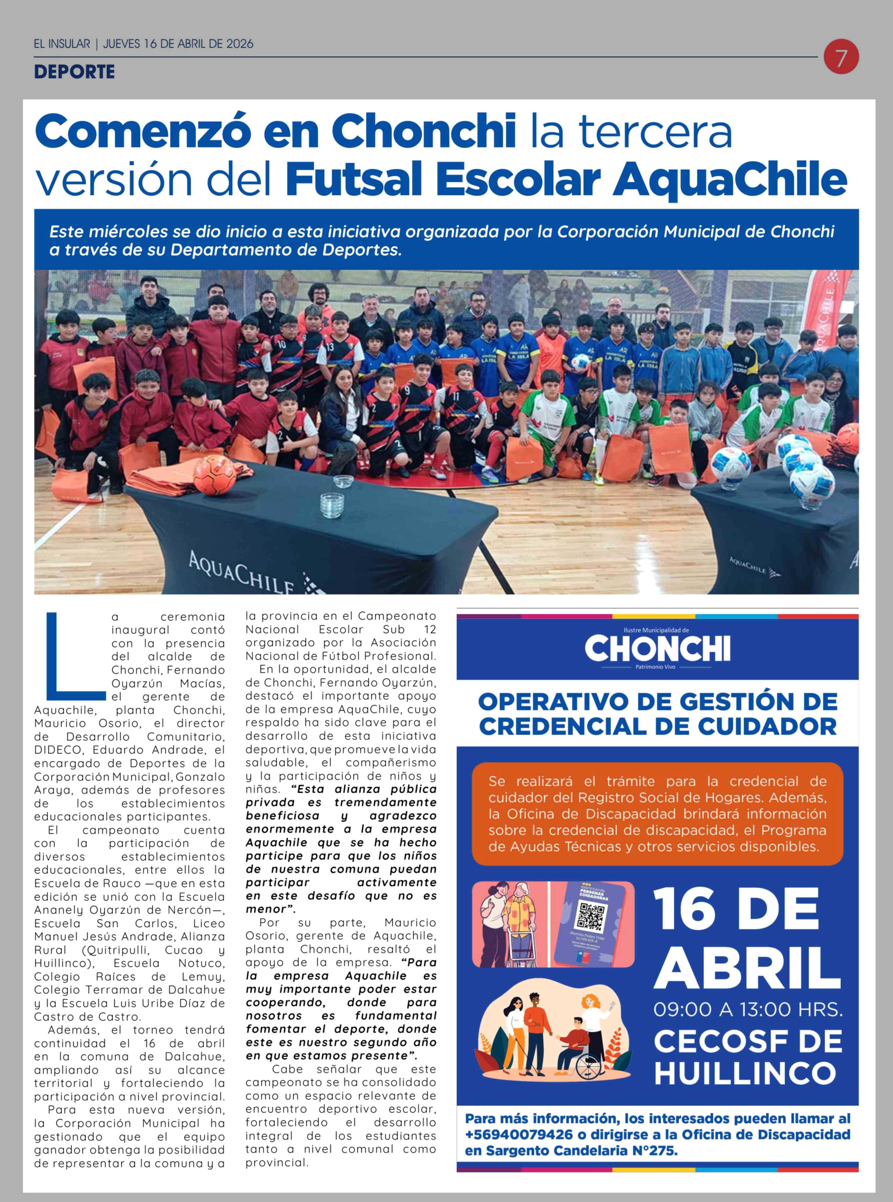 Comenzó en Chonchi la tercera versión del Futsal Escolar AquaChile 16-04-2026 El Insular |