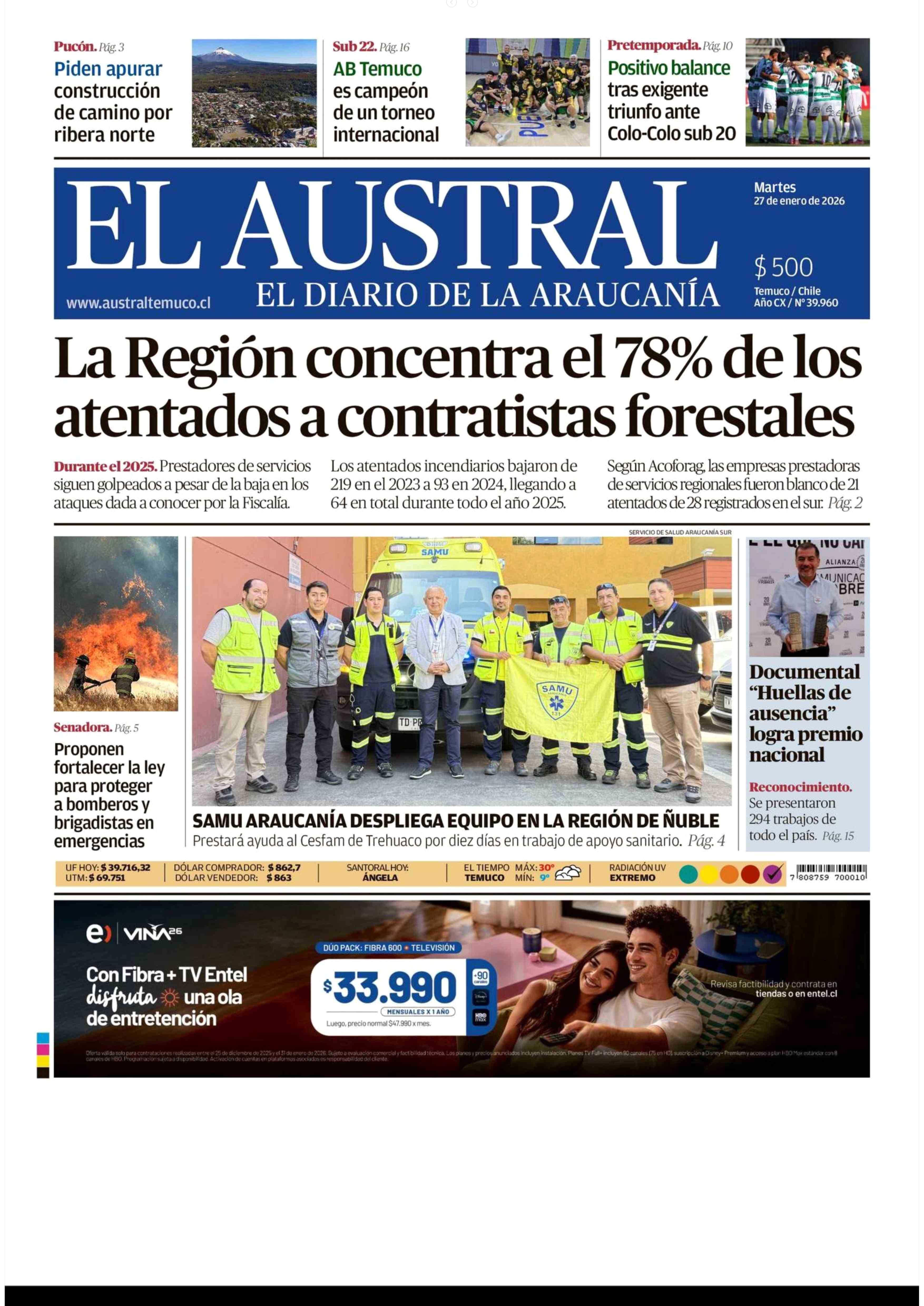 | Fecha: | 27-01-2026 | Sector: | Portada | Región: | Región de la Araucanía |