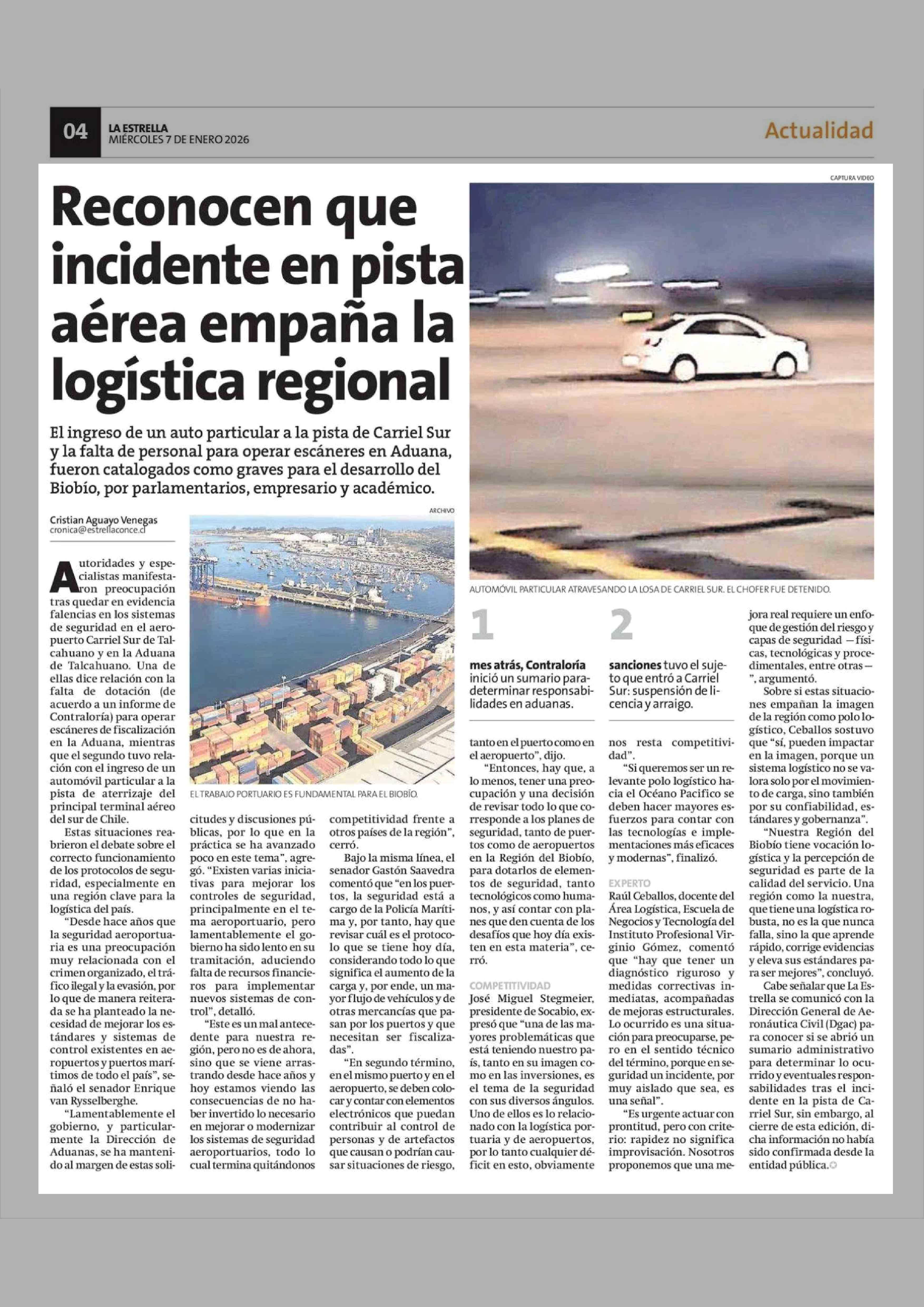 Reconocen que incidente en pista aérea empaña la logística regional 07-01-2026 La Estrella de Concepción |