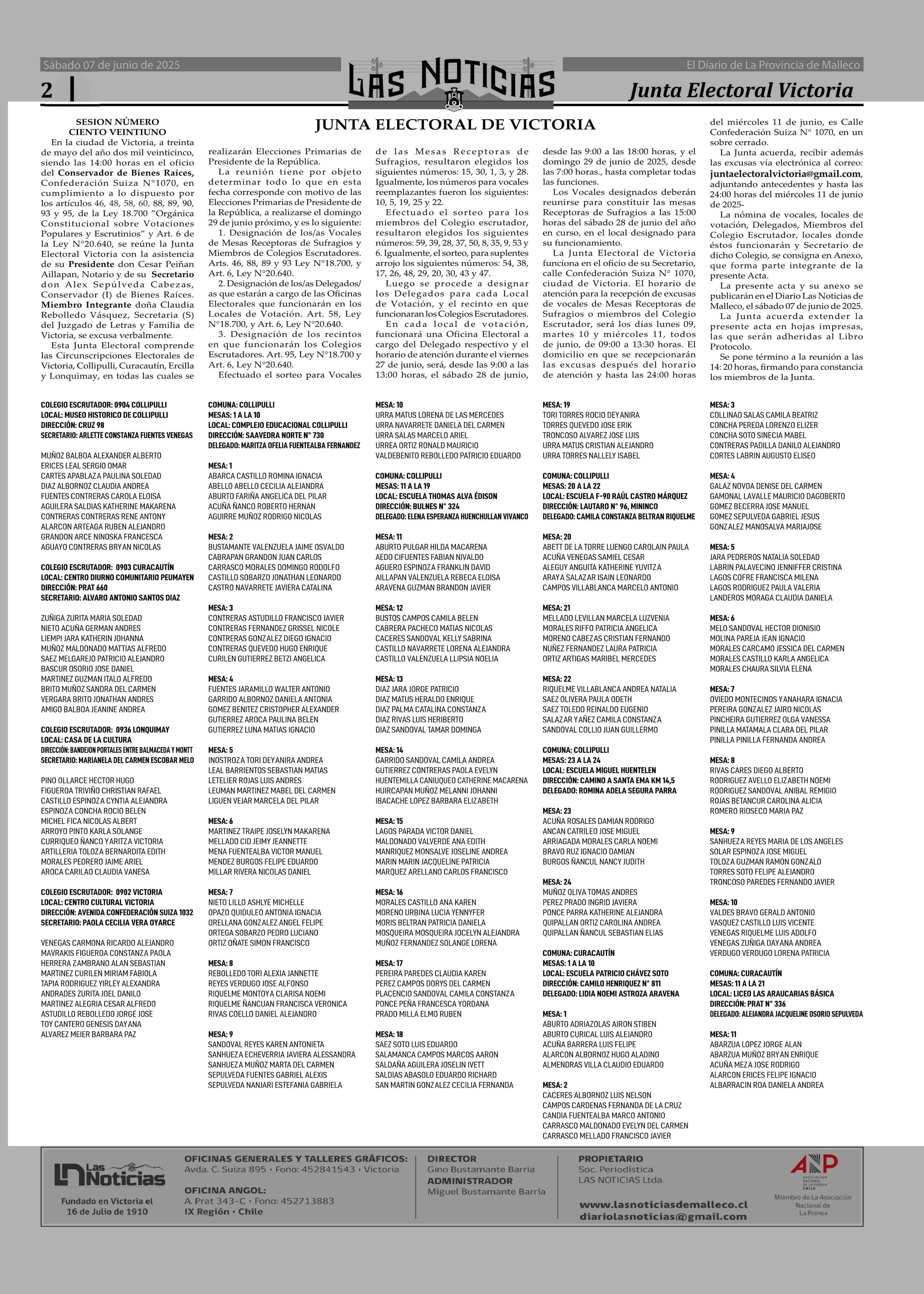 JUNTA ELECTORAL DE VICTORIA 07-06-2025 Las Noticias |