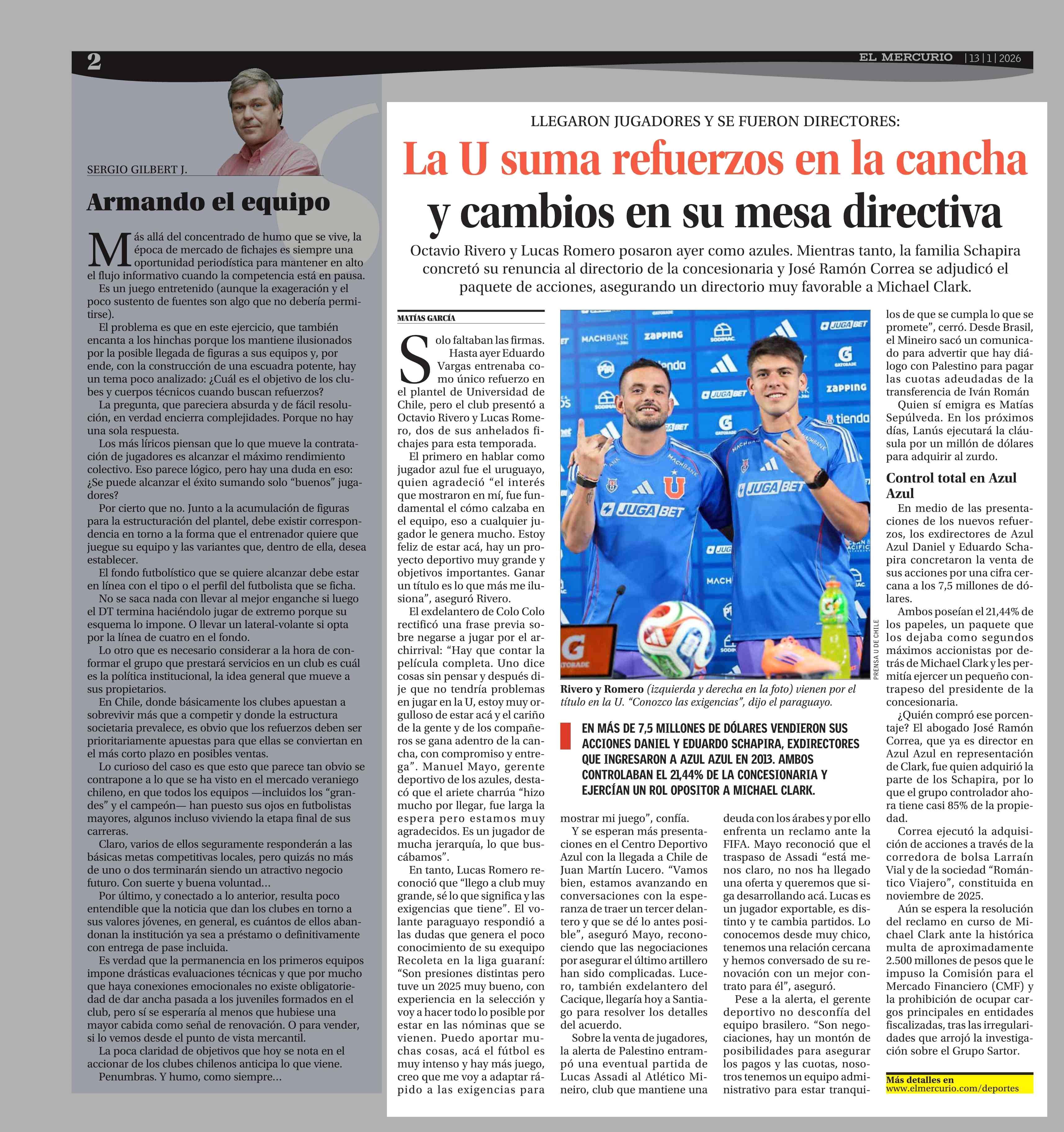 La U suma refuerzos en la cancha y cambios en su mesa directiva 13-01-2026 El Mercurio |