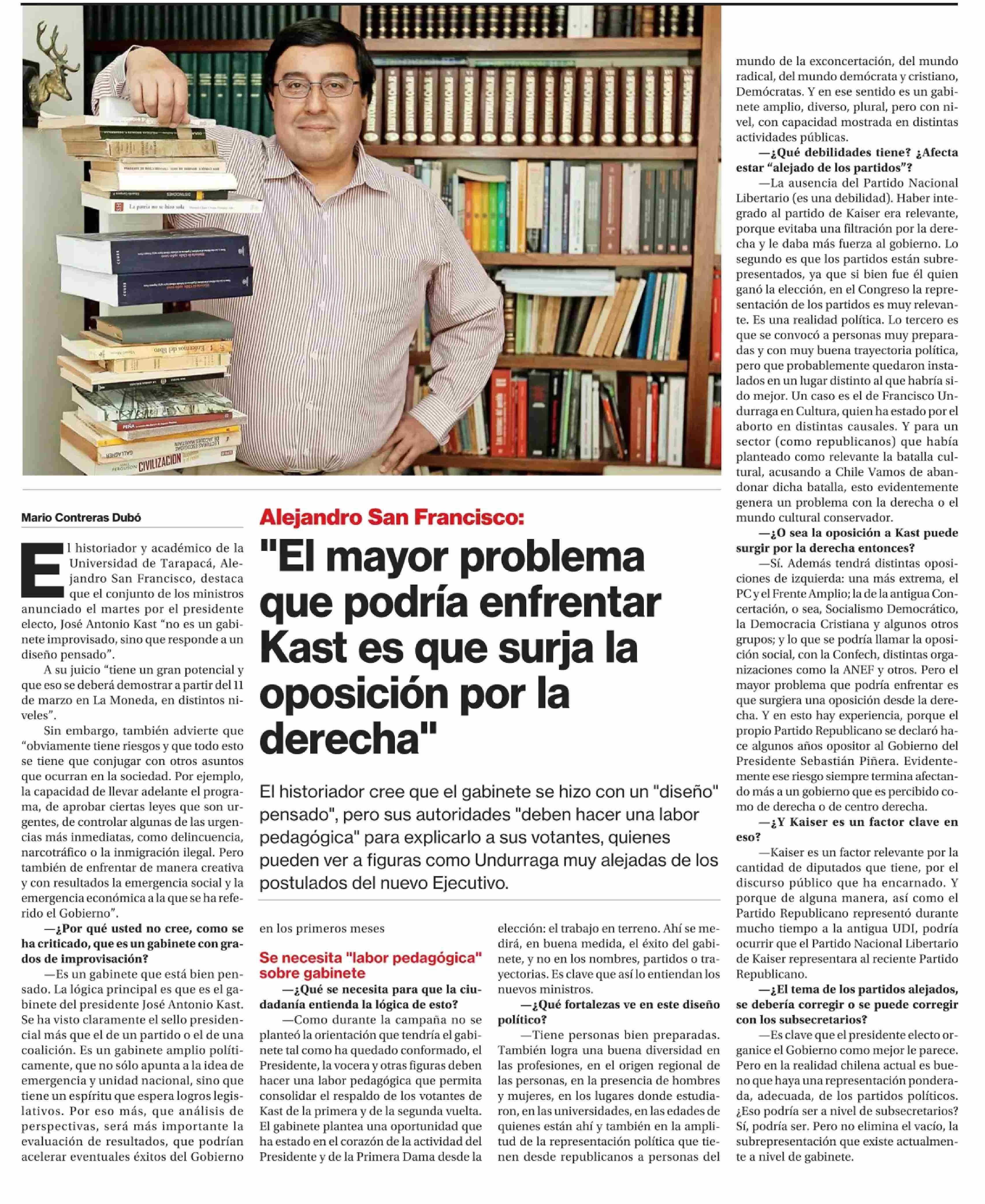 Título: "El mayor problema que podría enfrentar Kast es que surja la oposición por la derecha"