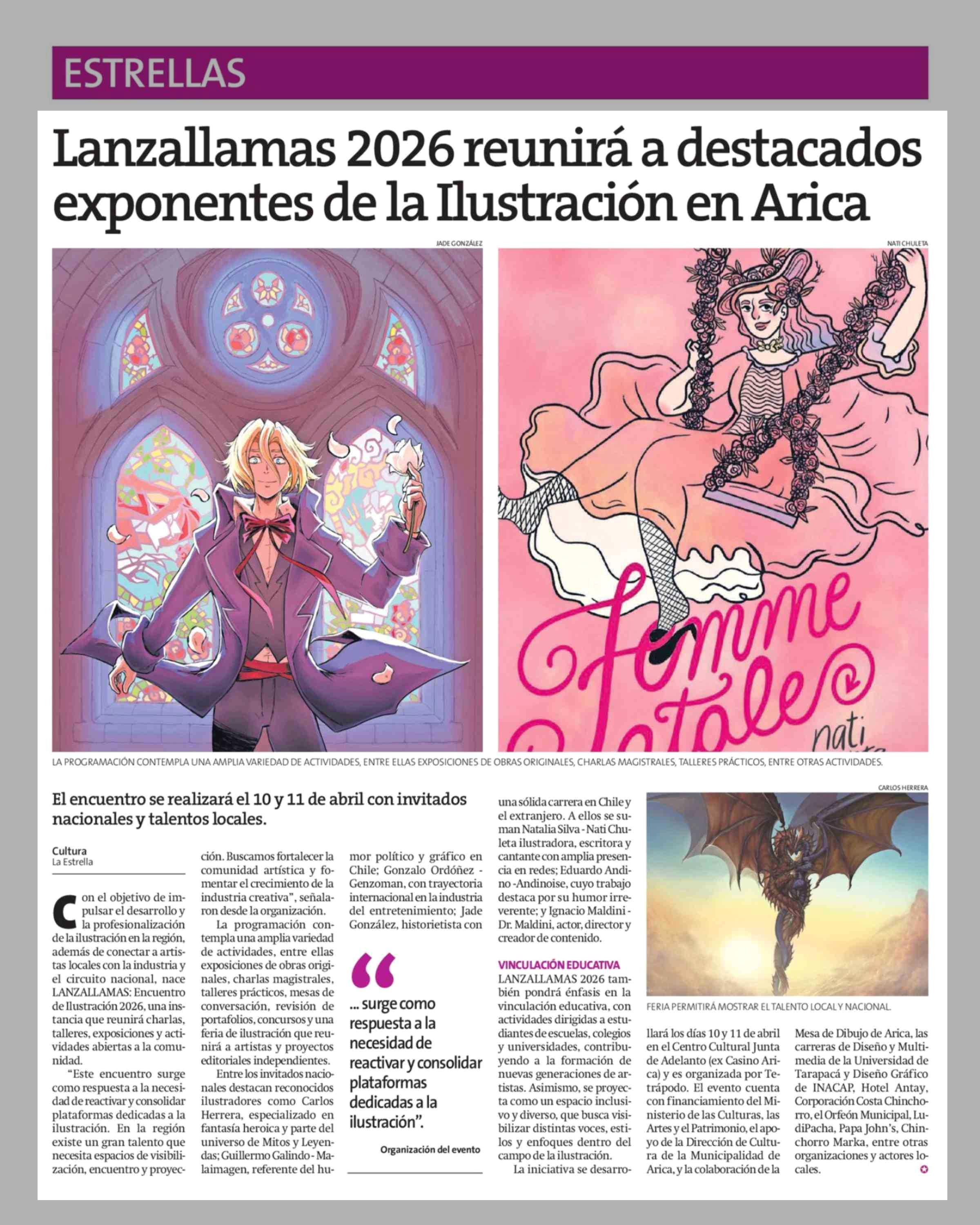 Título: Lanzallamas 2026 reunirá a destacados exponentes de la Ilustración en Arica