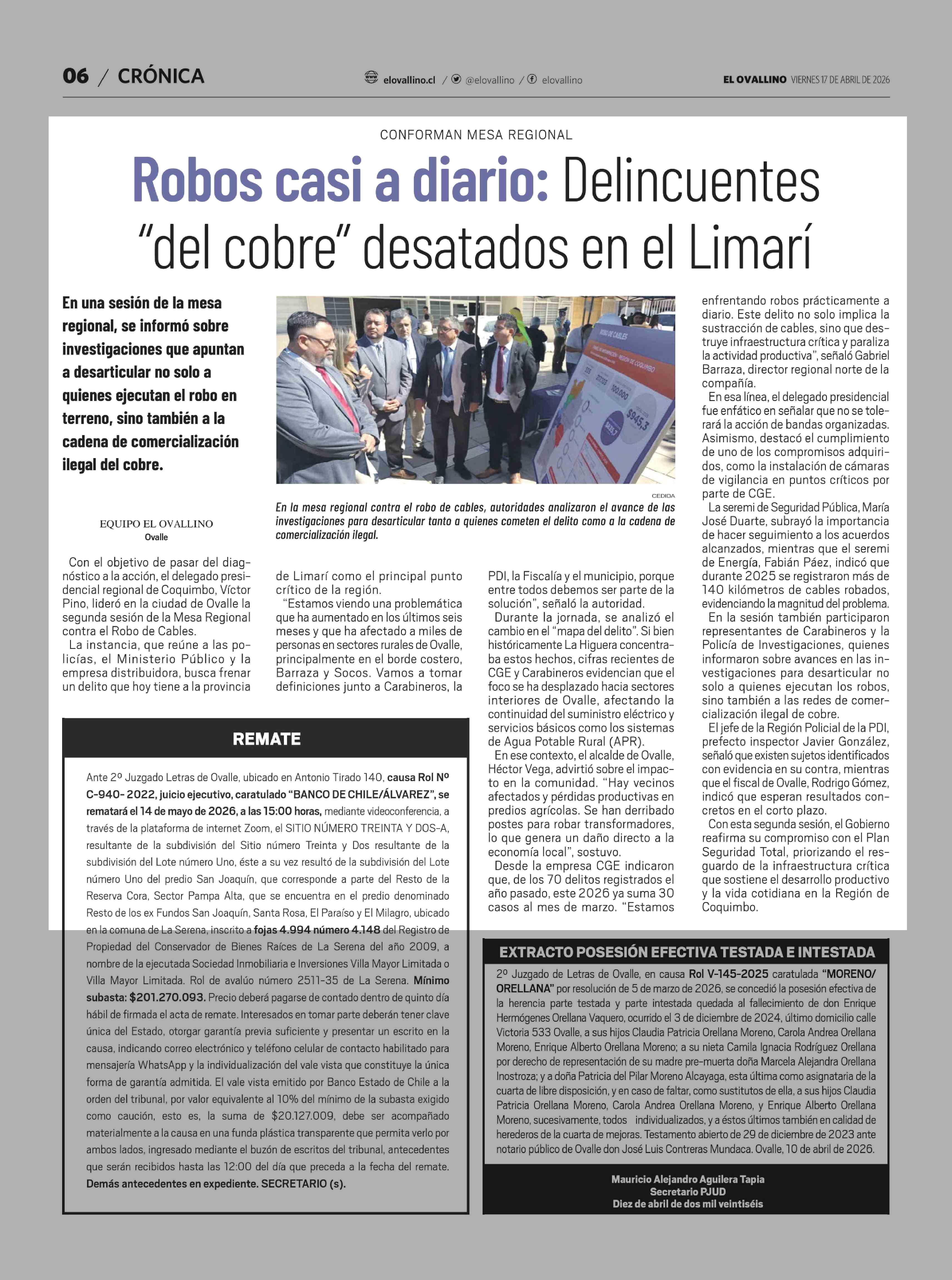 Título: Robos casi a diario: Delincuentes "del cobre" desatados en el Limarí
