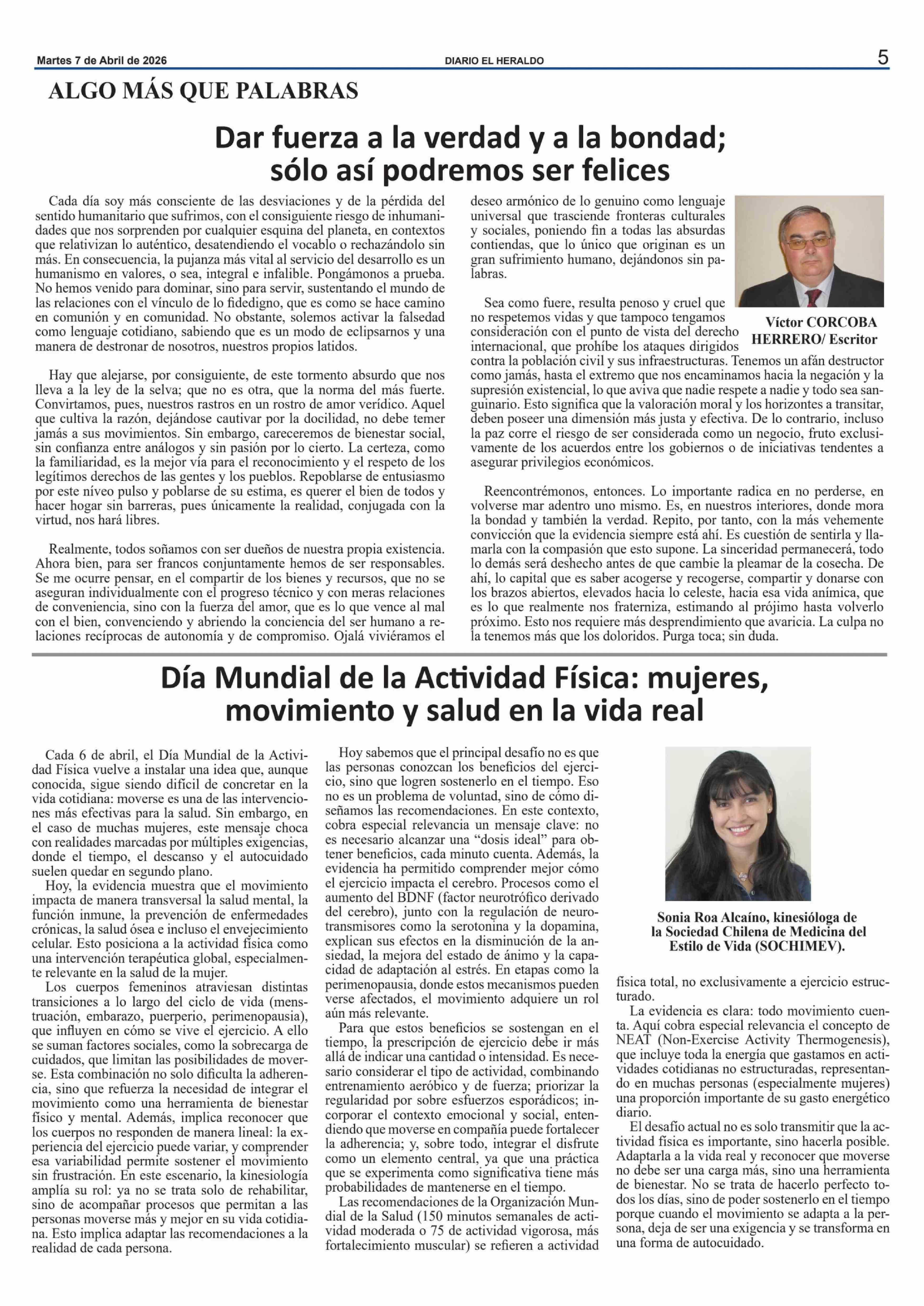 Columnas de Opinión: Día Mundial de la Actividad Física: mujeres, movimiento y salud en la vida real 07-04-2026 El Heraldo |