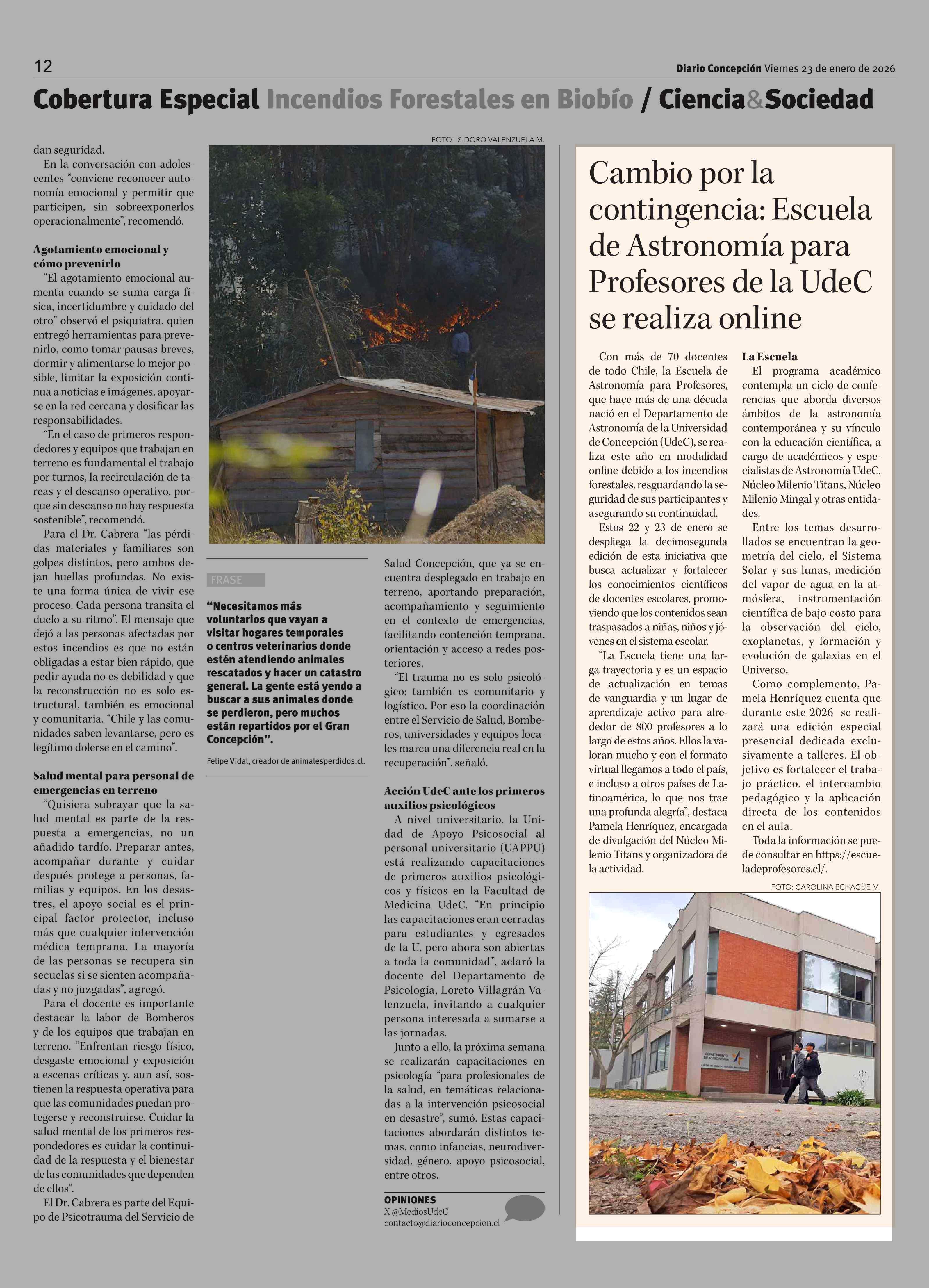 Cambio por la contingencia: Escuela de Astronomía para Profesores de la UdeC se realiza online 23-01-2026 Diario Concepción |