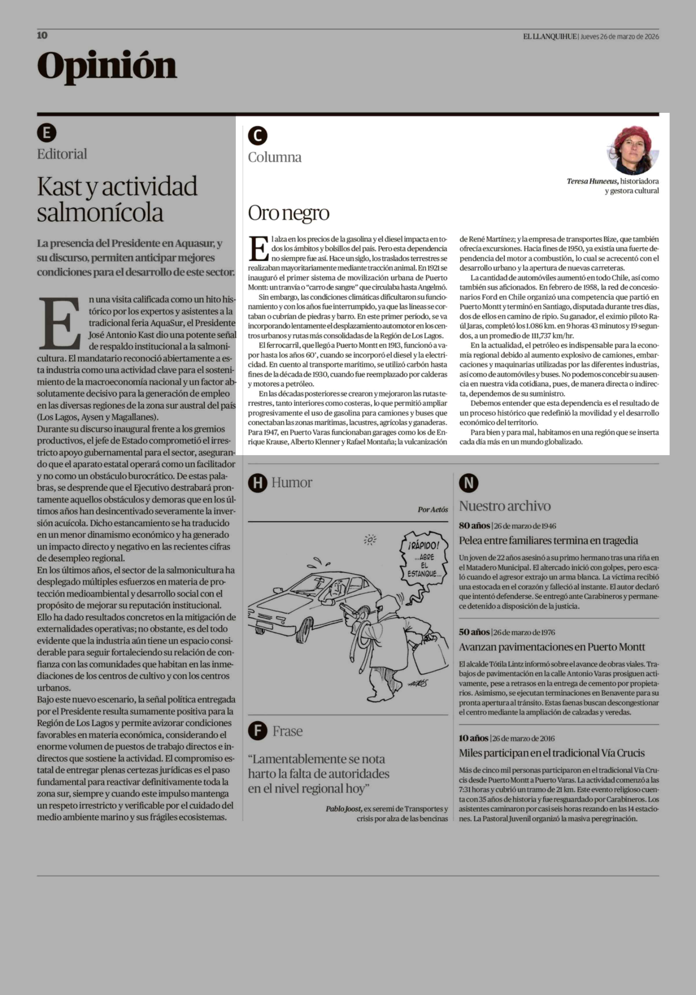 Fecha: 26-03-2026 Sector: Columnas de Opinión Región: Región de Los Lagos