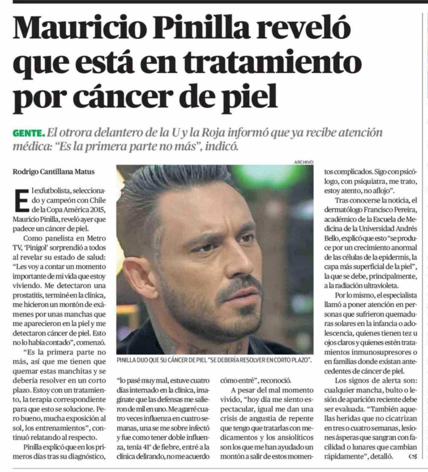 | Título: | Mauricio Pinilla reveló que está en tratamiento por cáncer de piel |