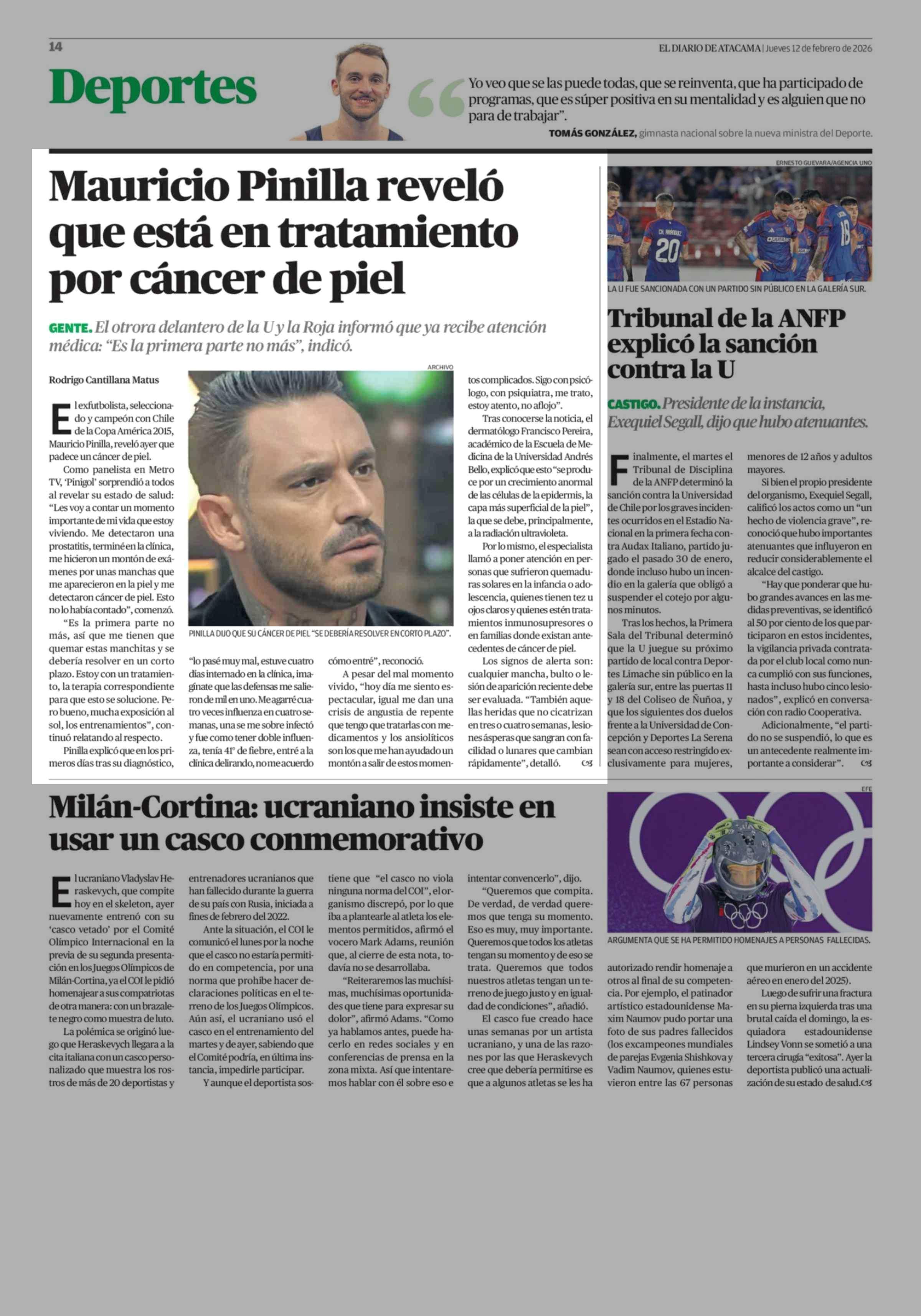 Mauricio Pinilla reveló que está en tratamiento por cáncer de piel 12-02-2026 El Diario de Atacama |