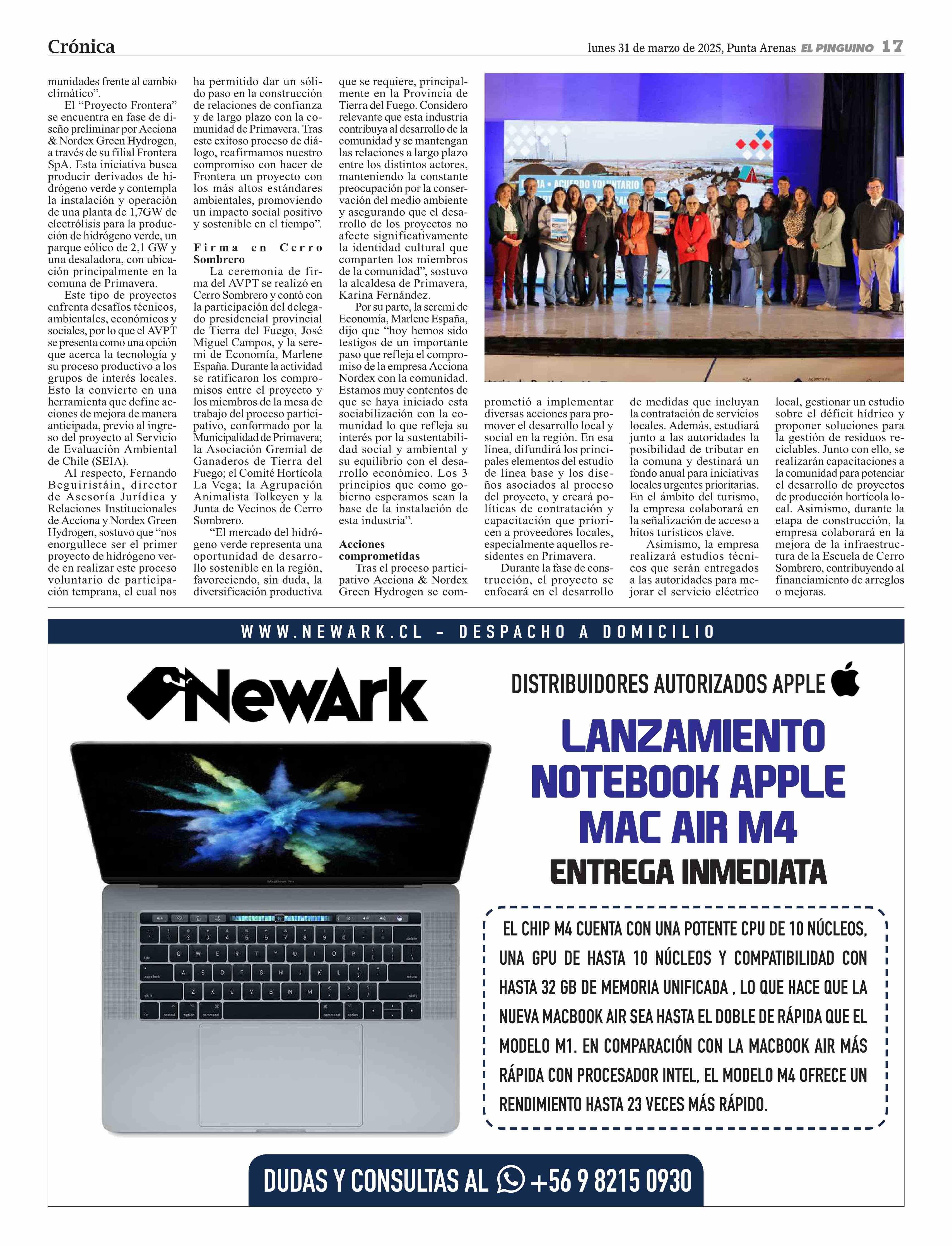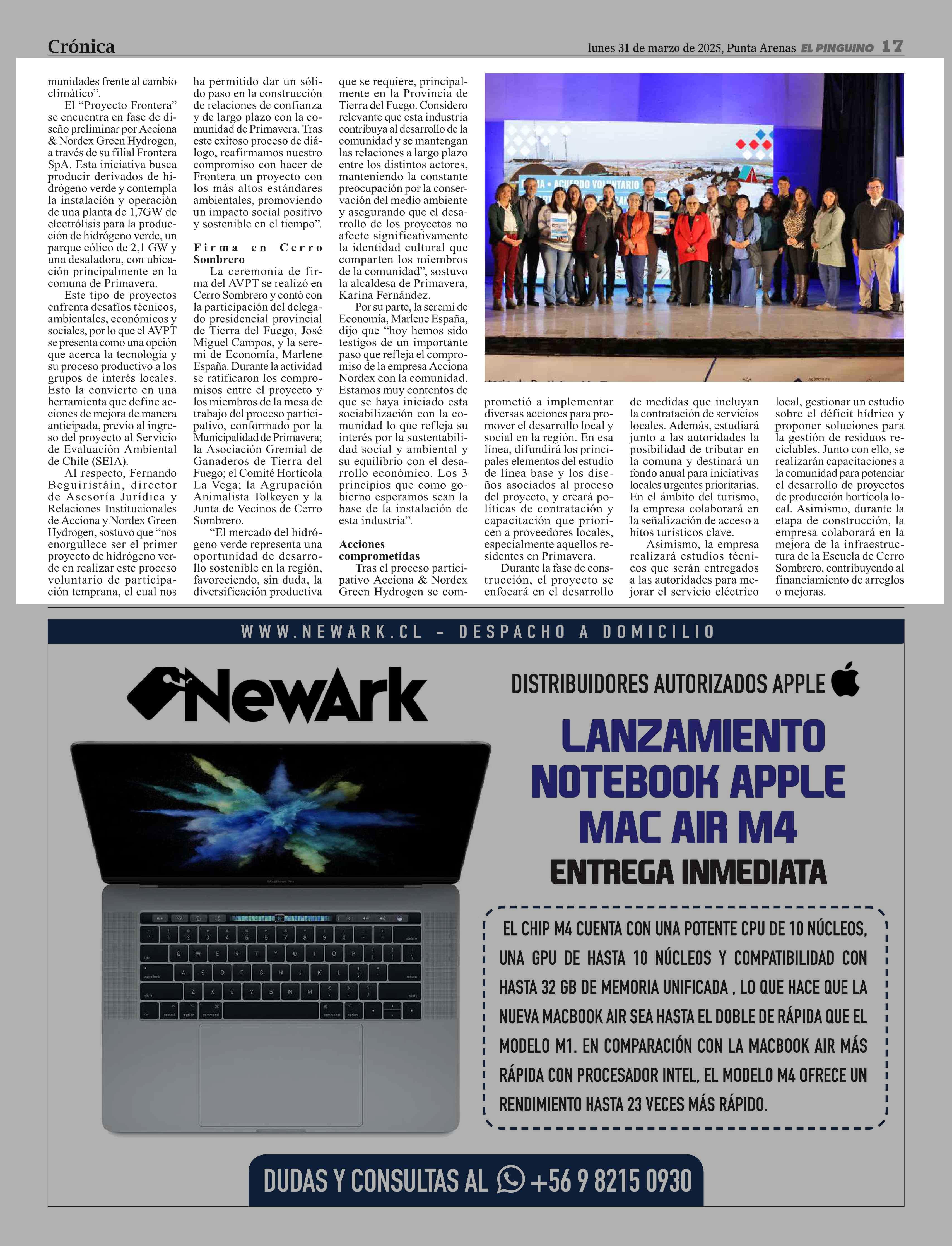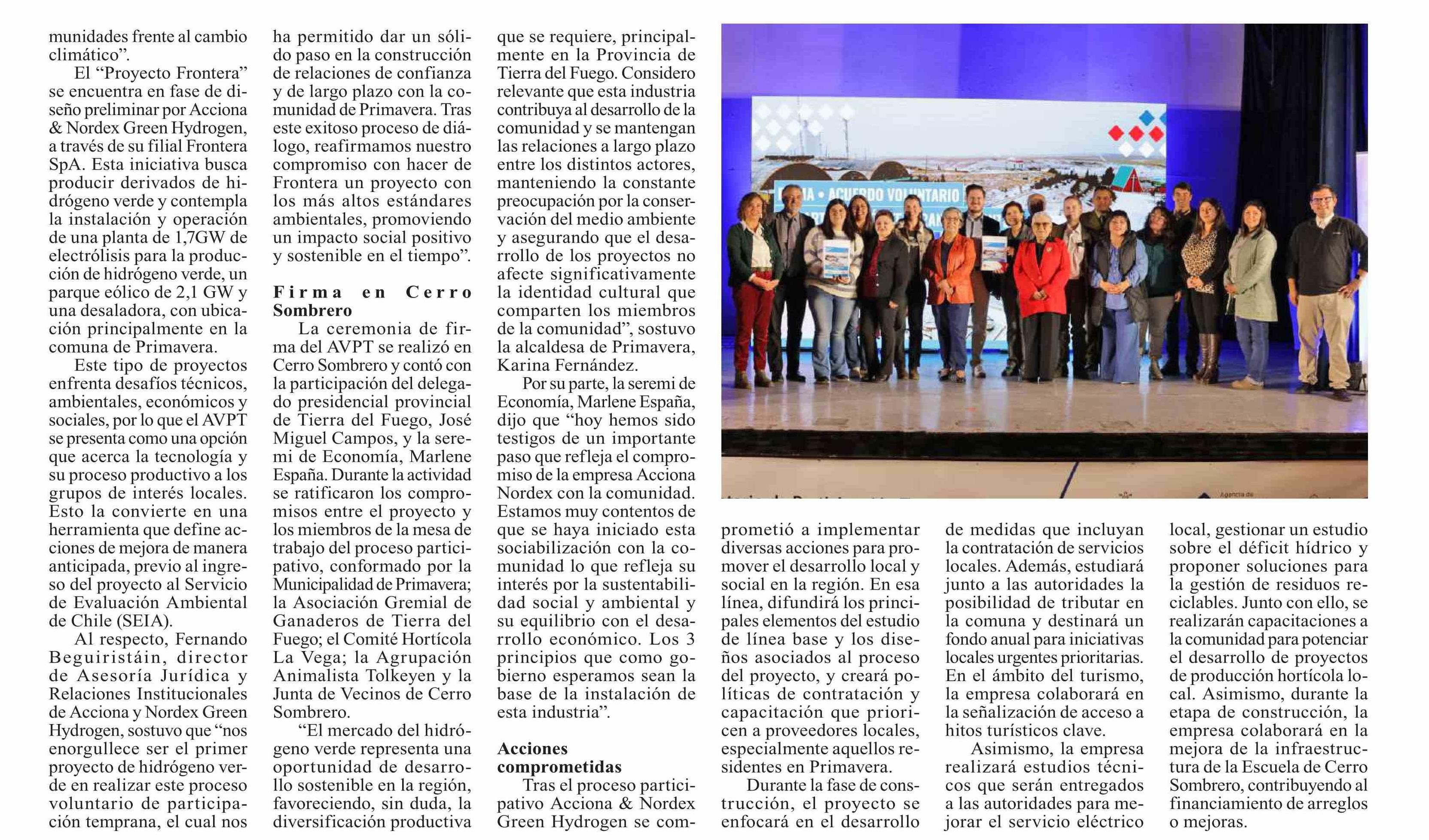 Firman primer acuerdo voluntario de participación temprana para un proyecto de hidrógeno verde en Magallanes 31-03-2025 El Pingüino |