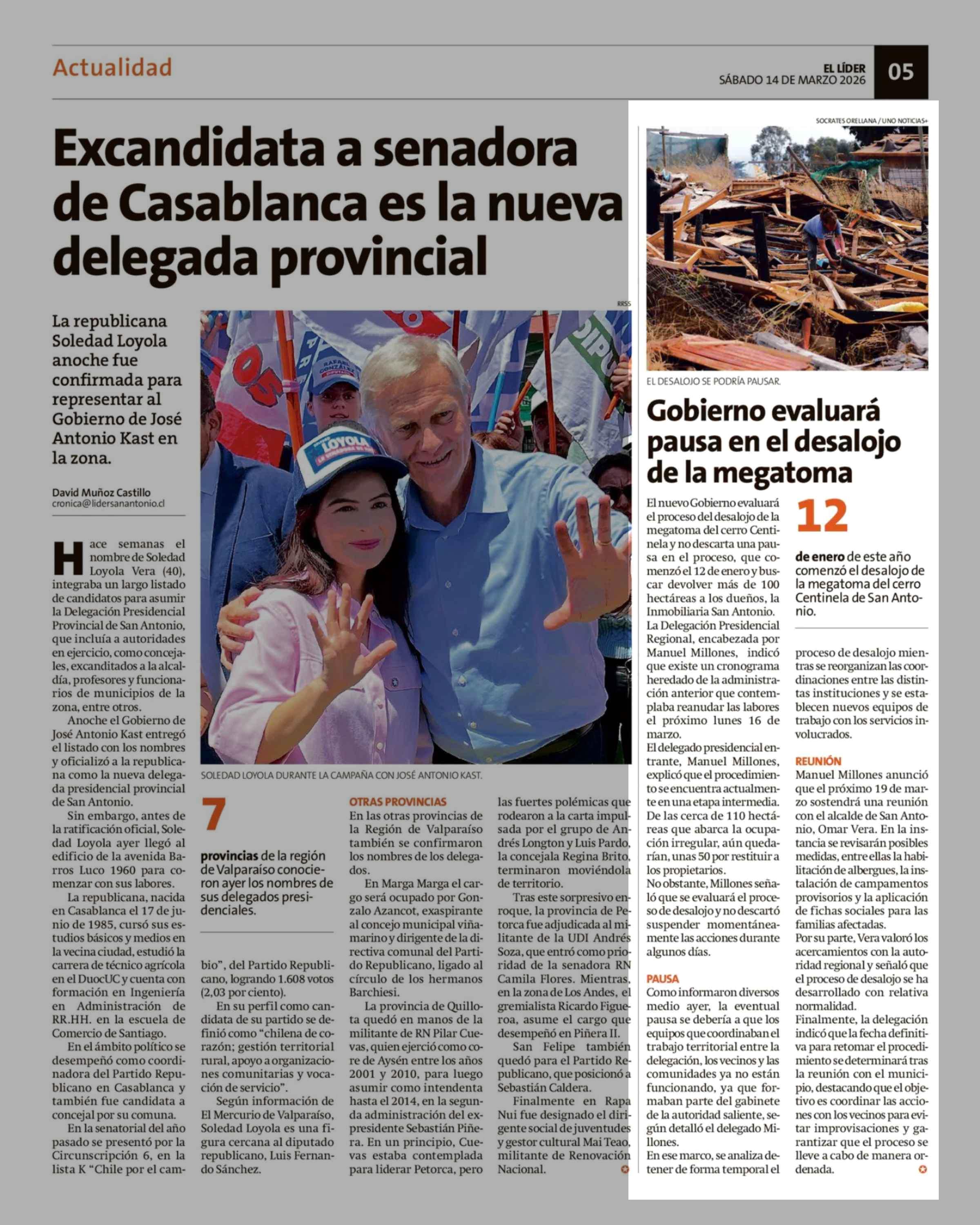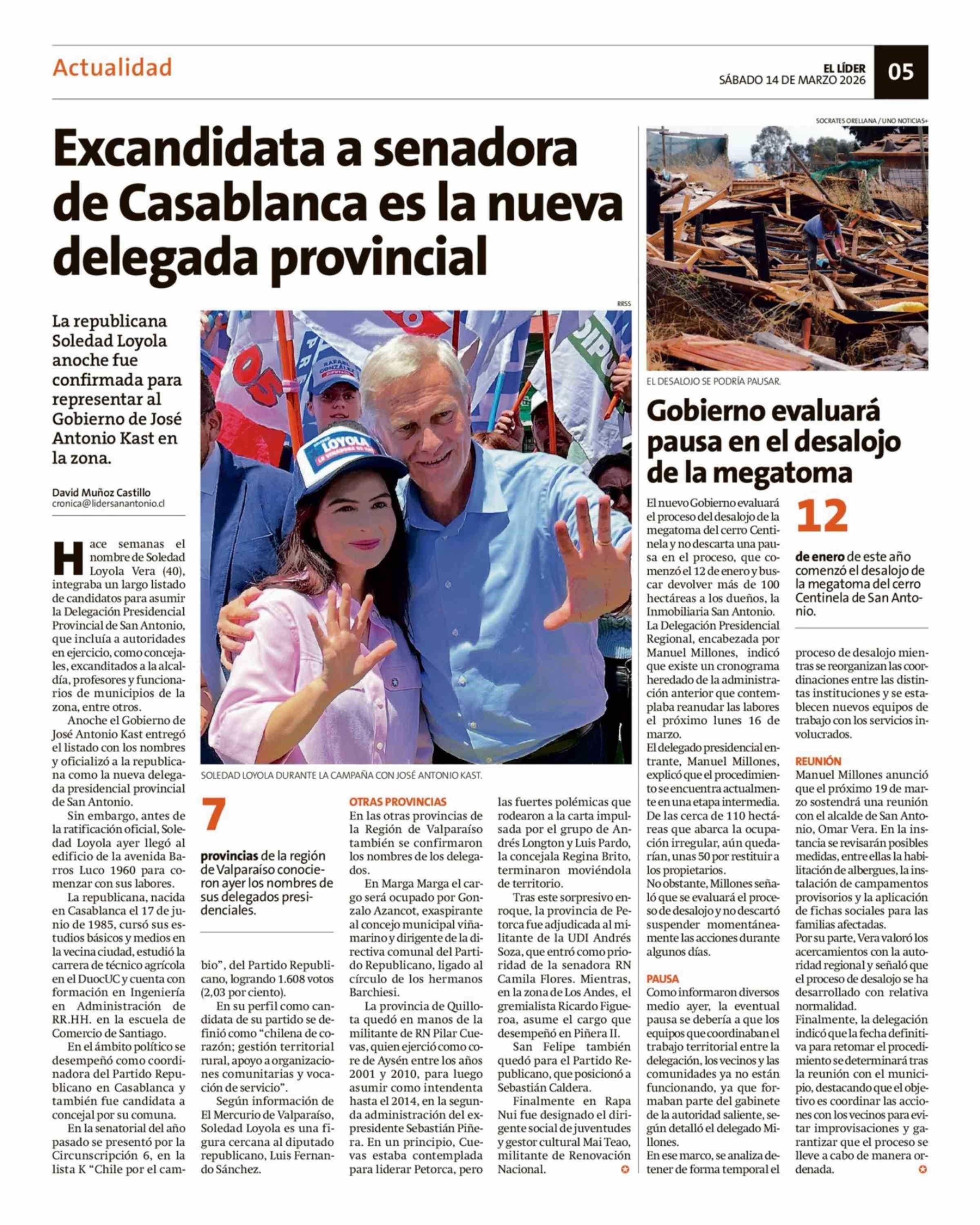 Gobierno evaluará pausa en el desalojo de la megatoma 14-03-2026 El Líder |
