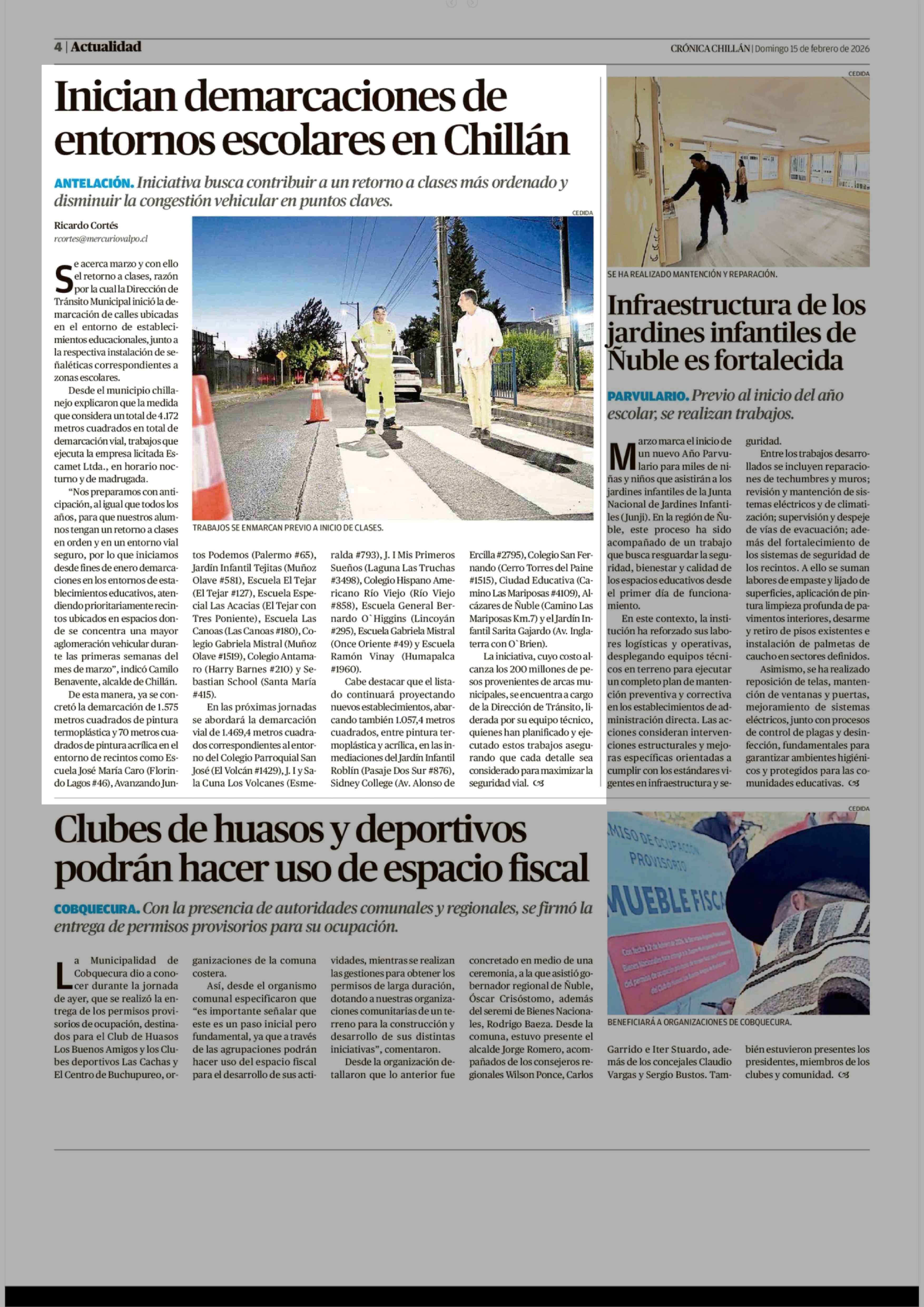 Fecha: 15-02-2026 Sector: Noticia general Región: Región del Ñuble