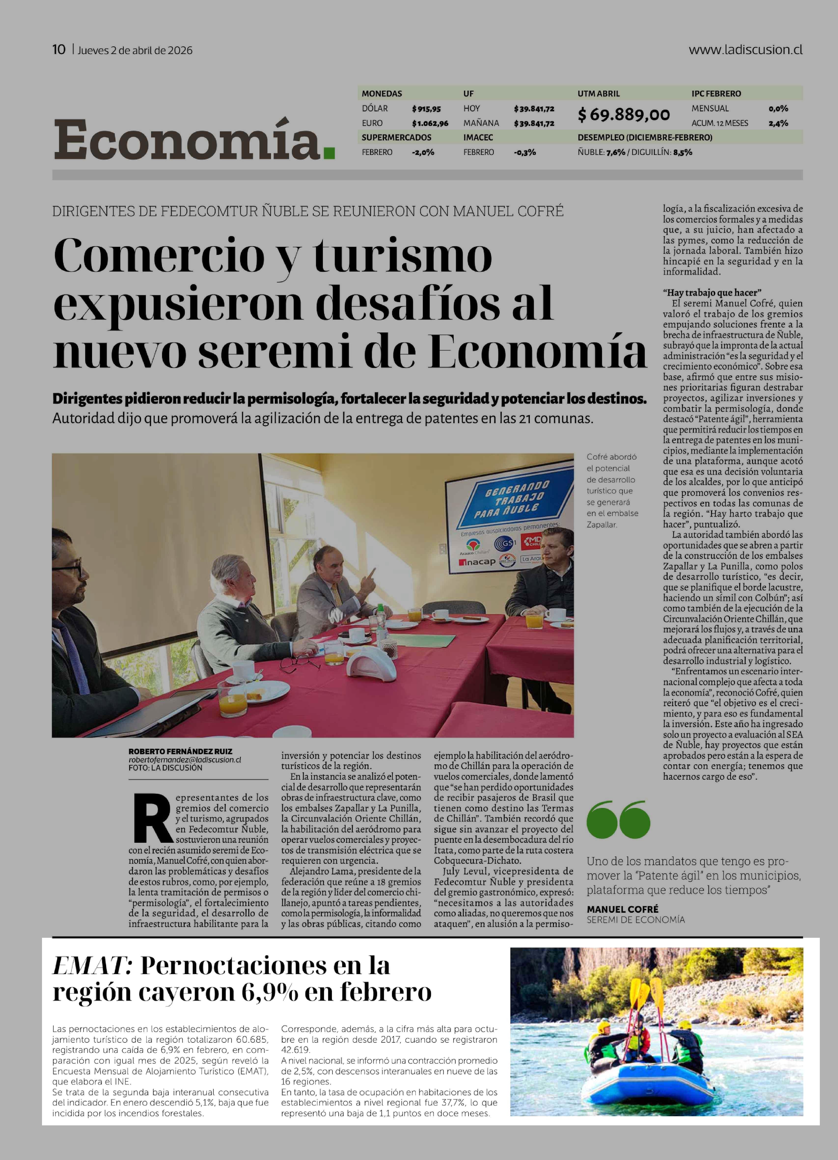 EMAT: Pernoctaciones en la región cayeron 6,9% en febrero 02-04-2026 La Discusión |