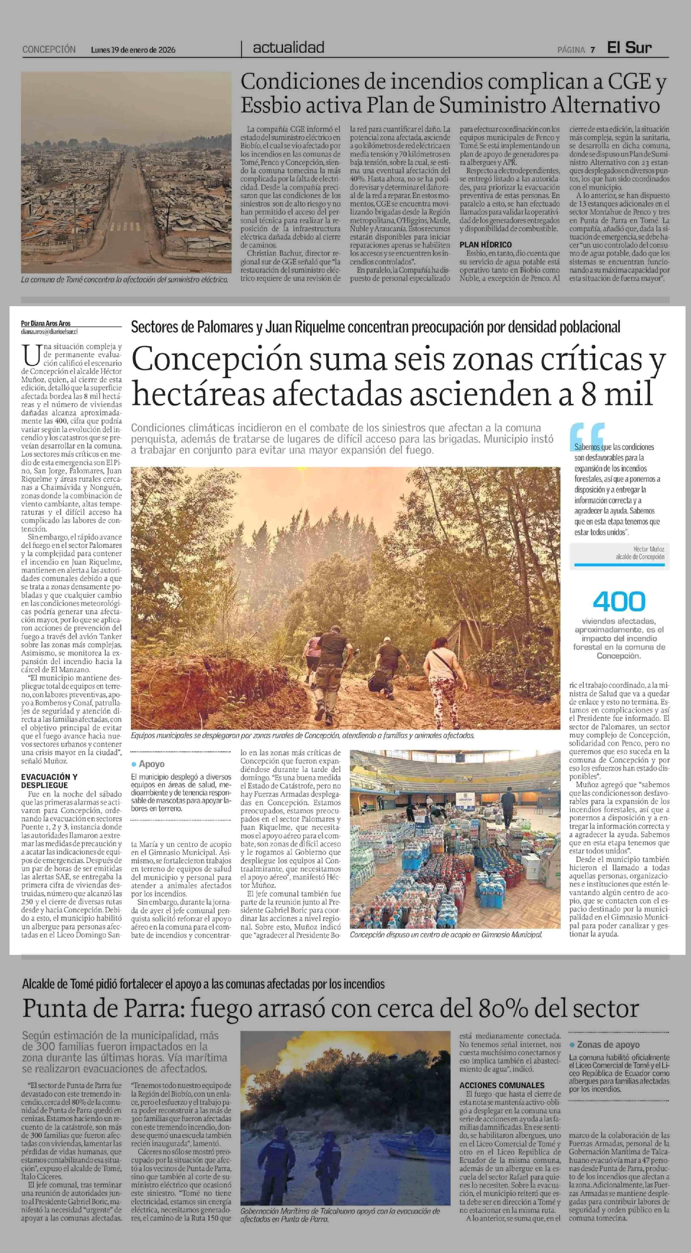 Concepción suma seis zonas críticas y hectáreas afectadas ascienden a 8 mil 19-01-2026 El Sur |