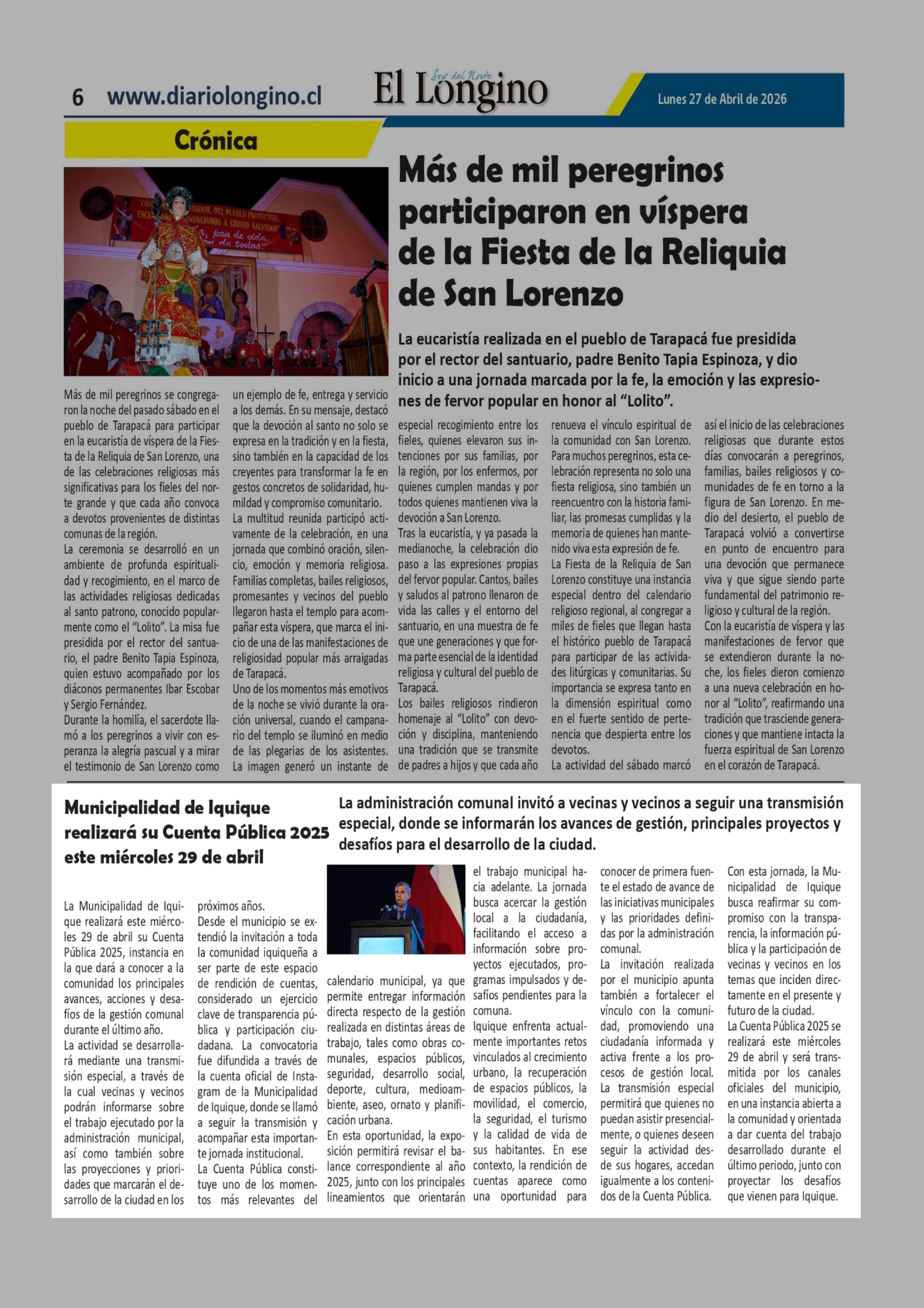 | Fecha: | 27-04-2026 | Sector: | Noticia general | Región: | Región de Tarapacá |