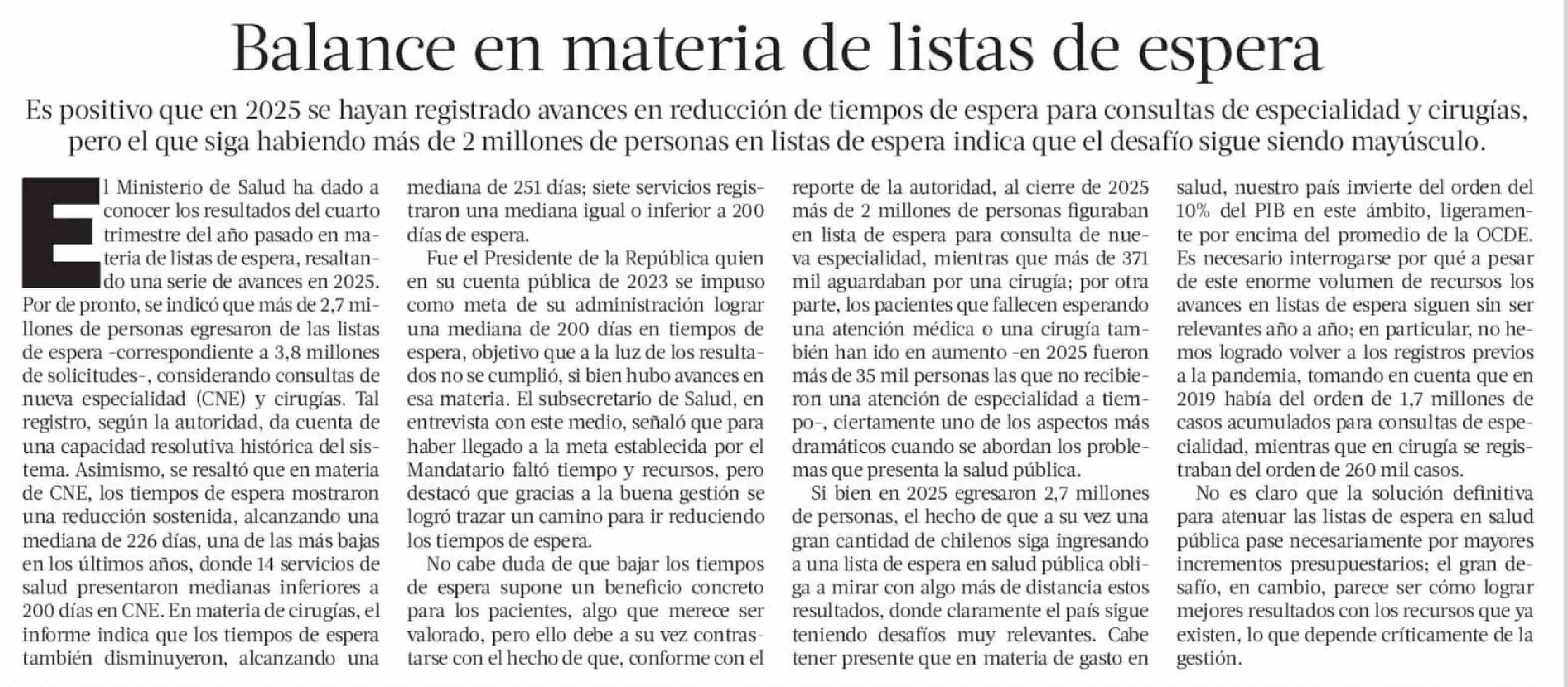 Editorial: Balance en materia de listas de espera