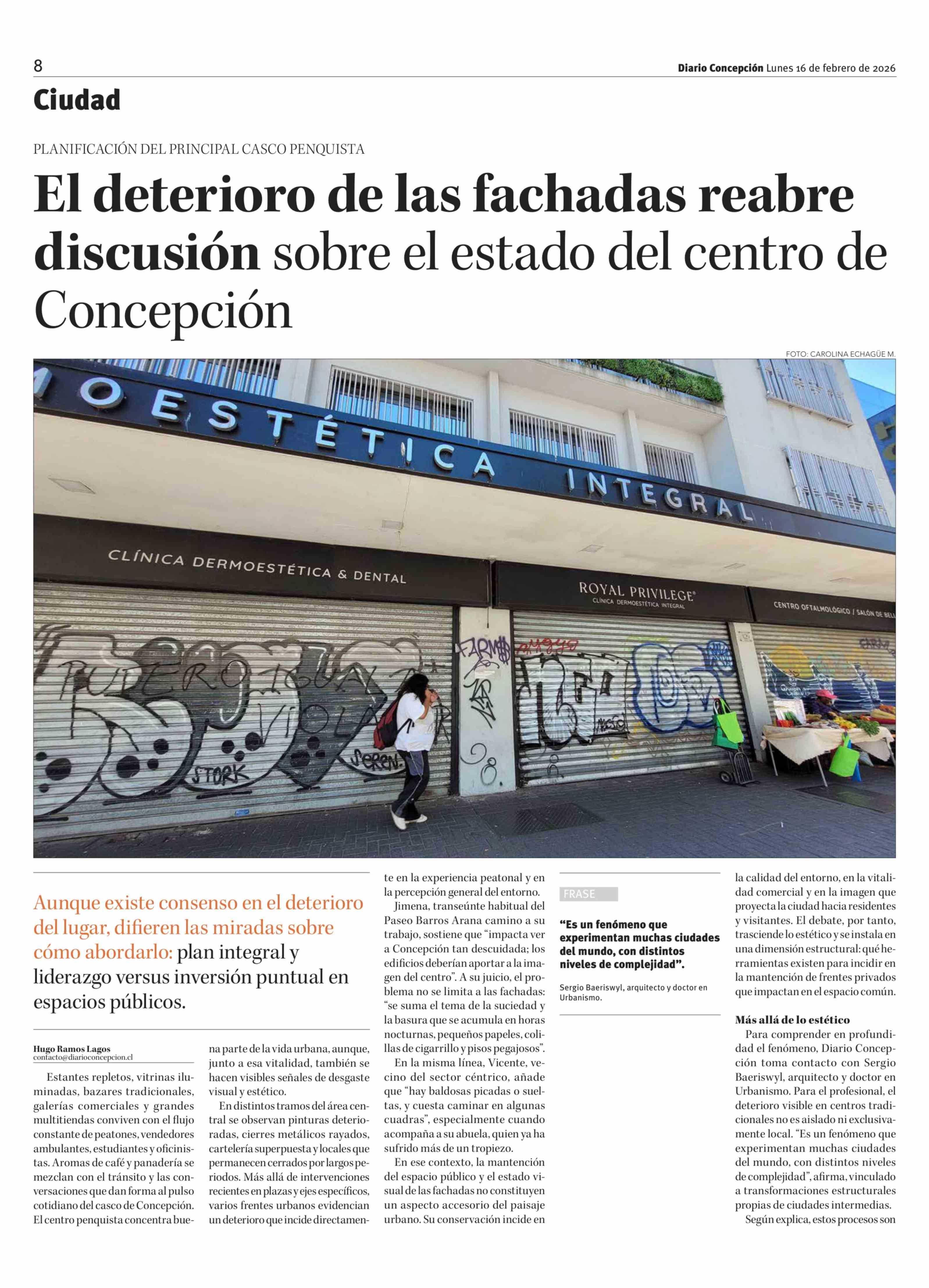 El deterioro de las fachadas reabre discusión sobre el estado del centro de Concepción 16-02-2026 Diario Concepción |