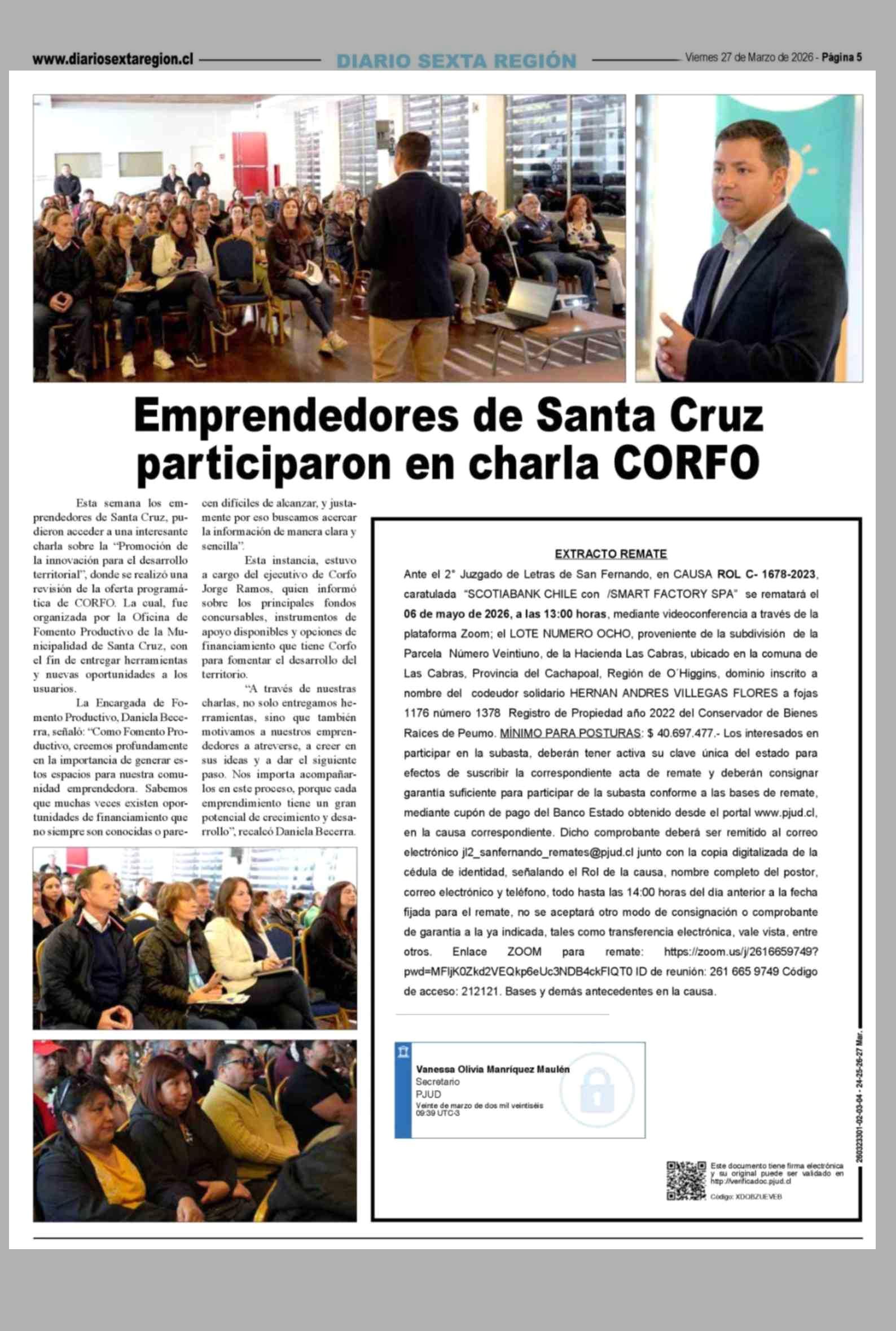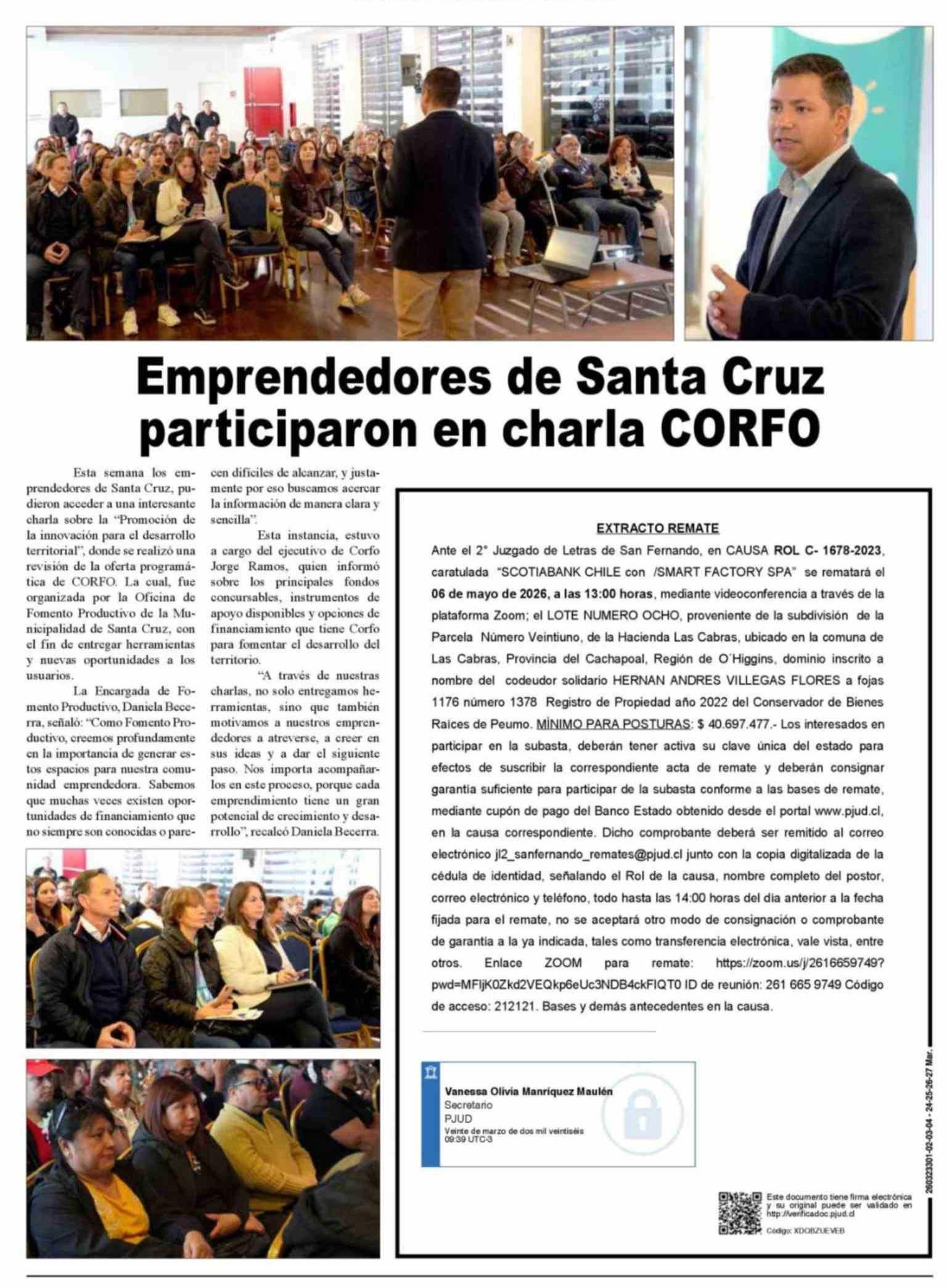 Emprendedores de Santa Cruz participaron en charla CORFO 27-03-2026 Diario VI Región |