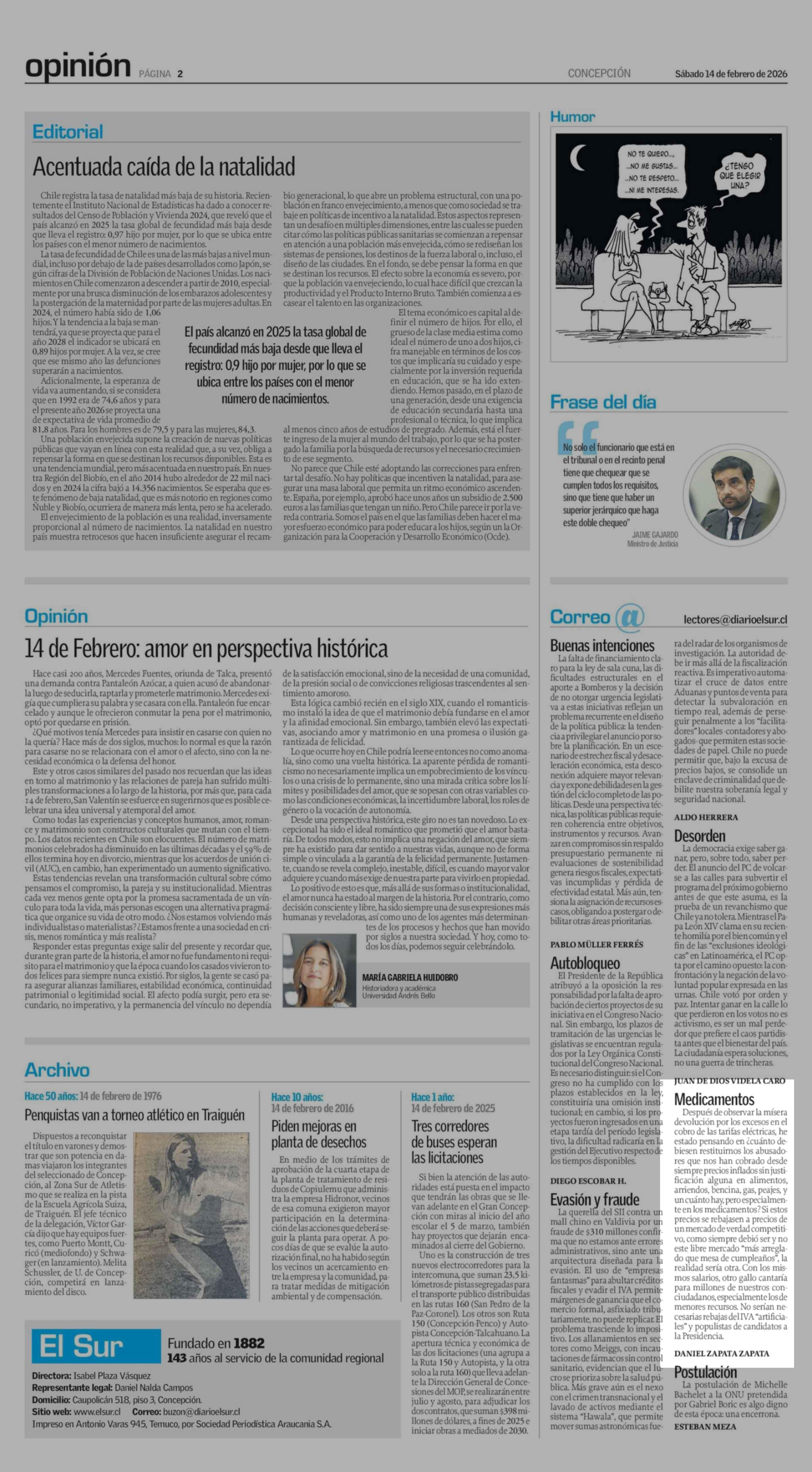 Cartas: Medicamentos 14-02-2026 El Sur |