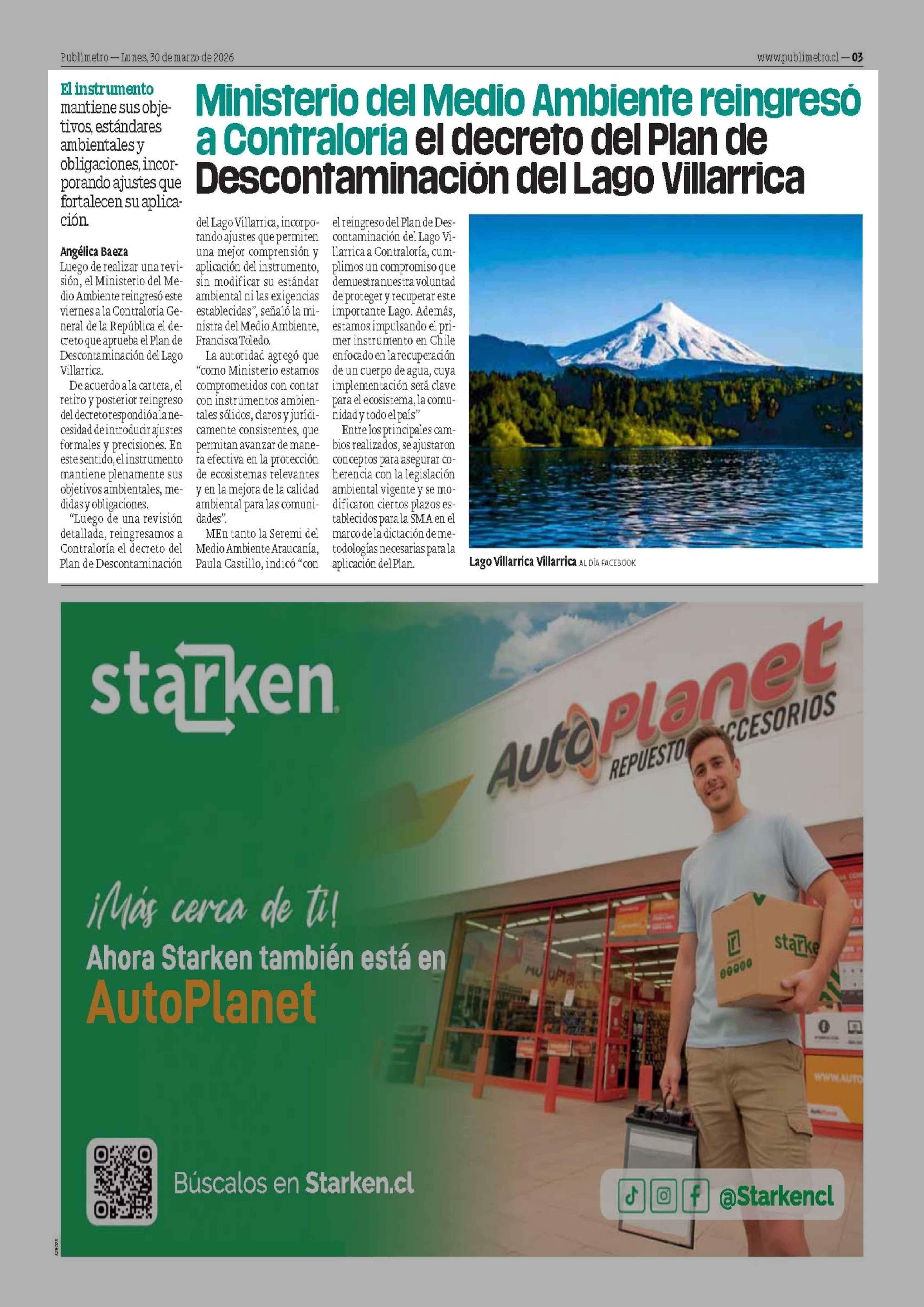 Título: Ministerio del Medio Ambiente reingreso a Contraloría el decreto del Plan de Descontaminación del Lago Villarrica