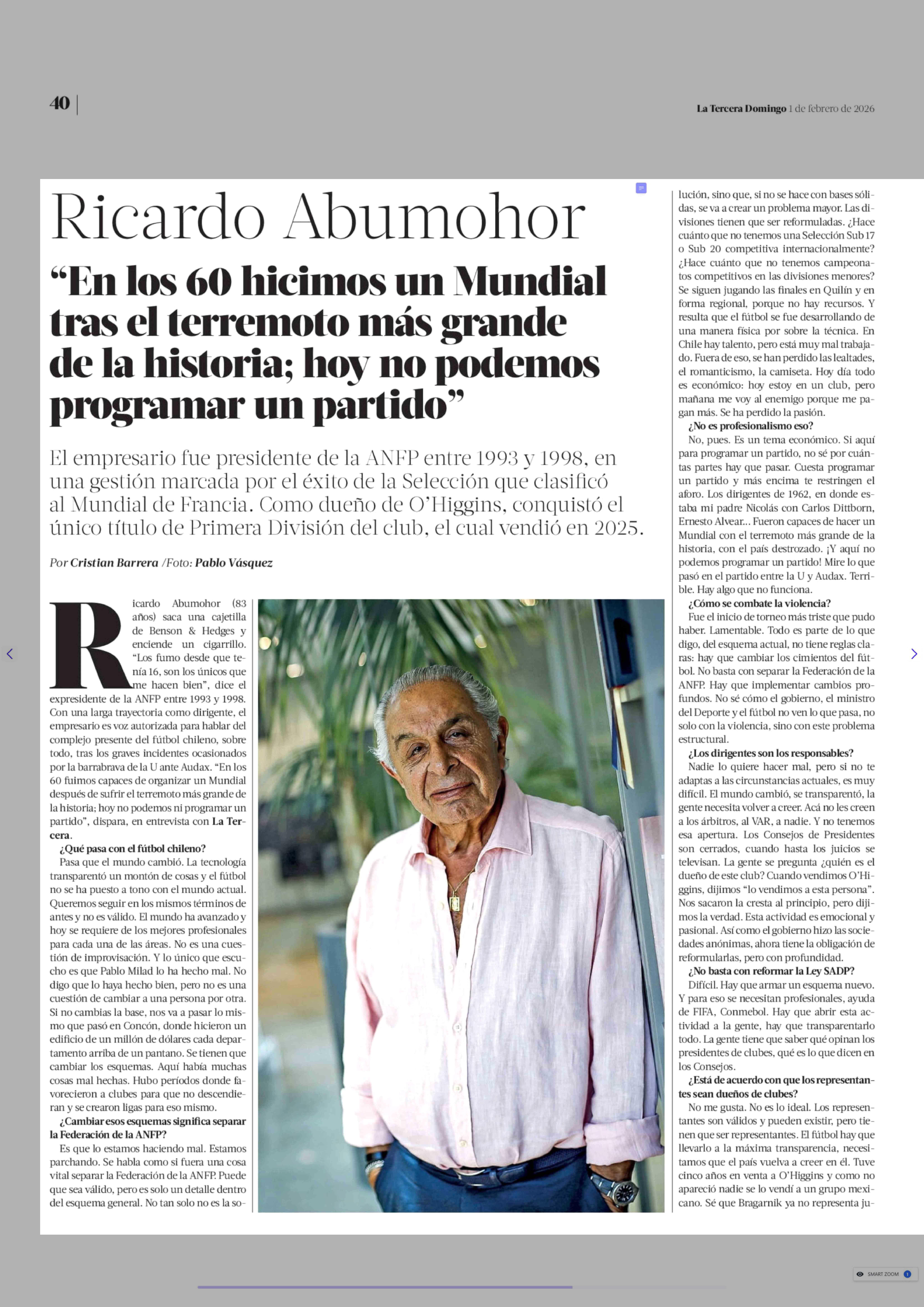 "En los 60 hicimos un Mundial tras el terremoto más grande de la historia; hoy no podemos programar un partido" 01-02-2026 La Tercera |