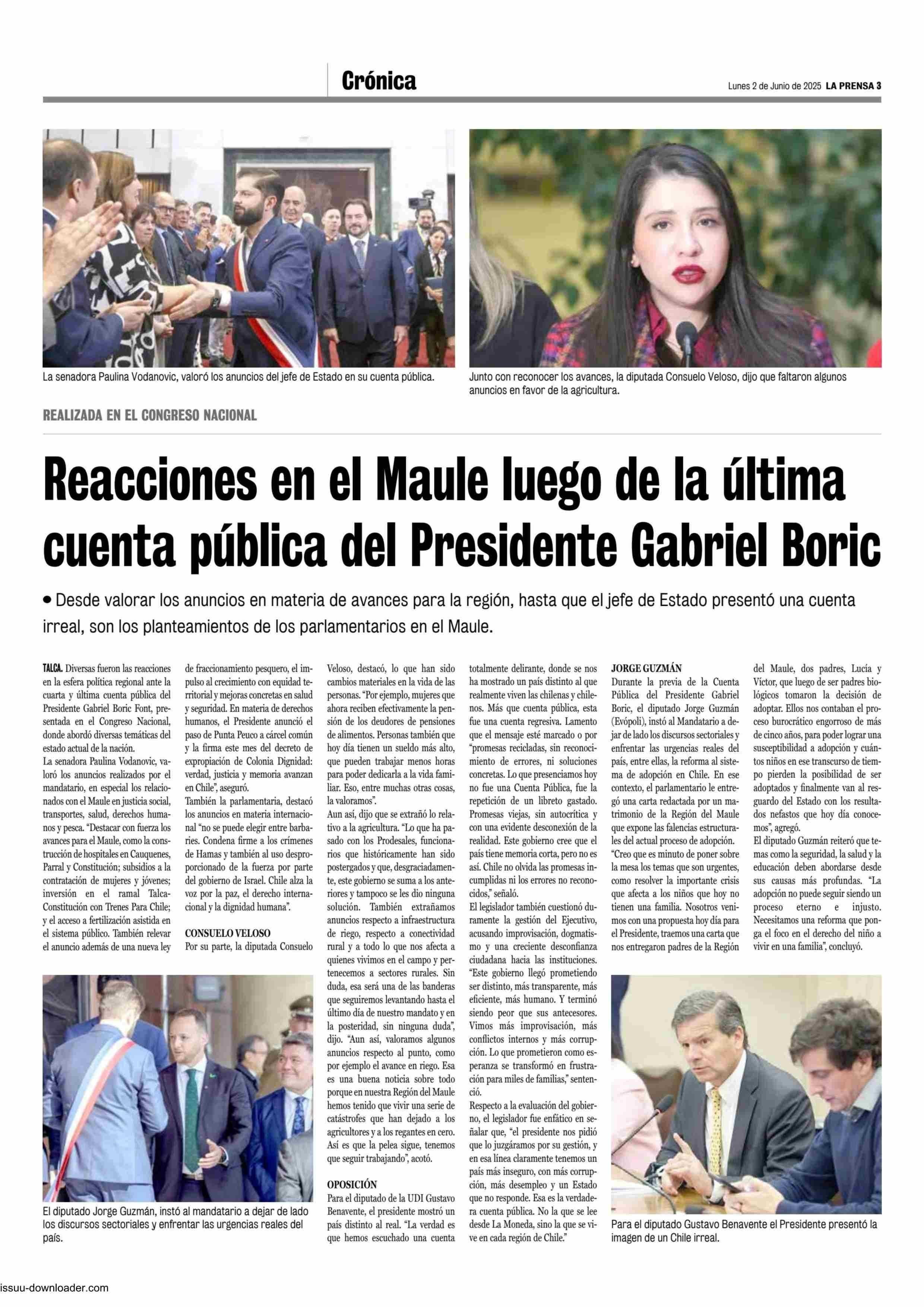 Reacciones en el Maule luego de la última cuenta pública del Presidente Gabriel Boric 02-06-2025 La Prensa de Curicó |