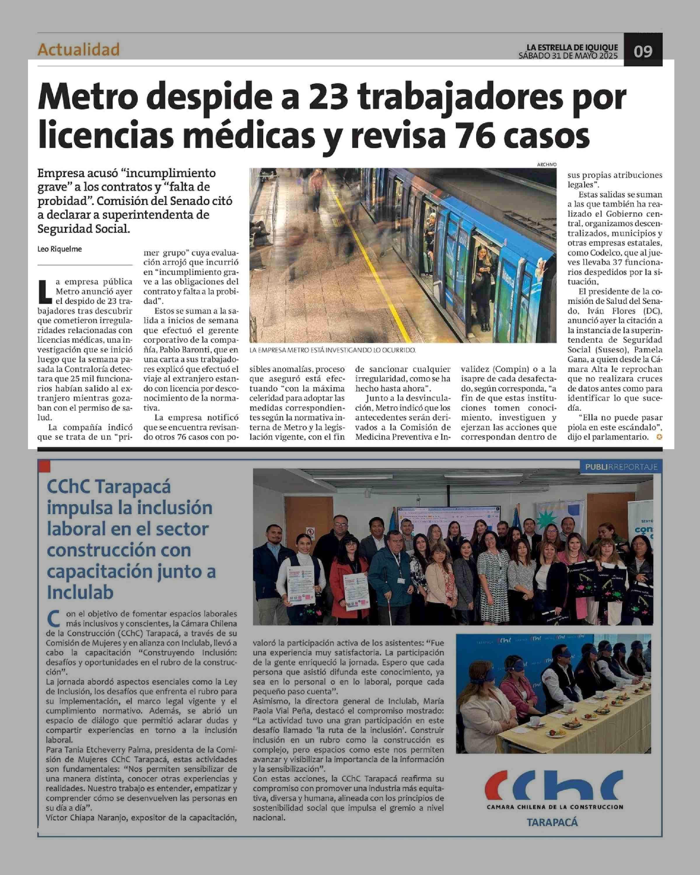 Metro despide a 23 trabajadores por licencias médicas y revisa 76 casos 31-05-2025 La Estrella de Iquique |