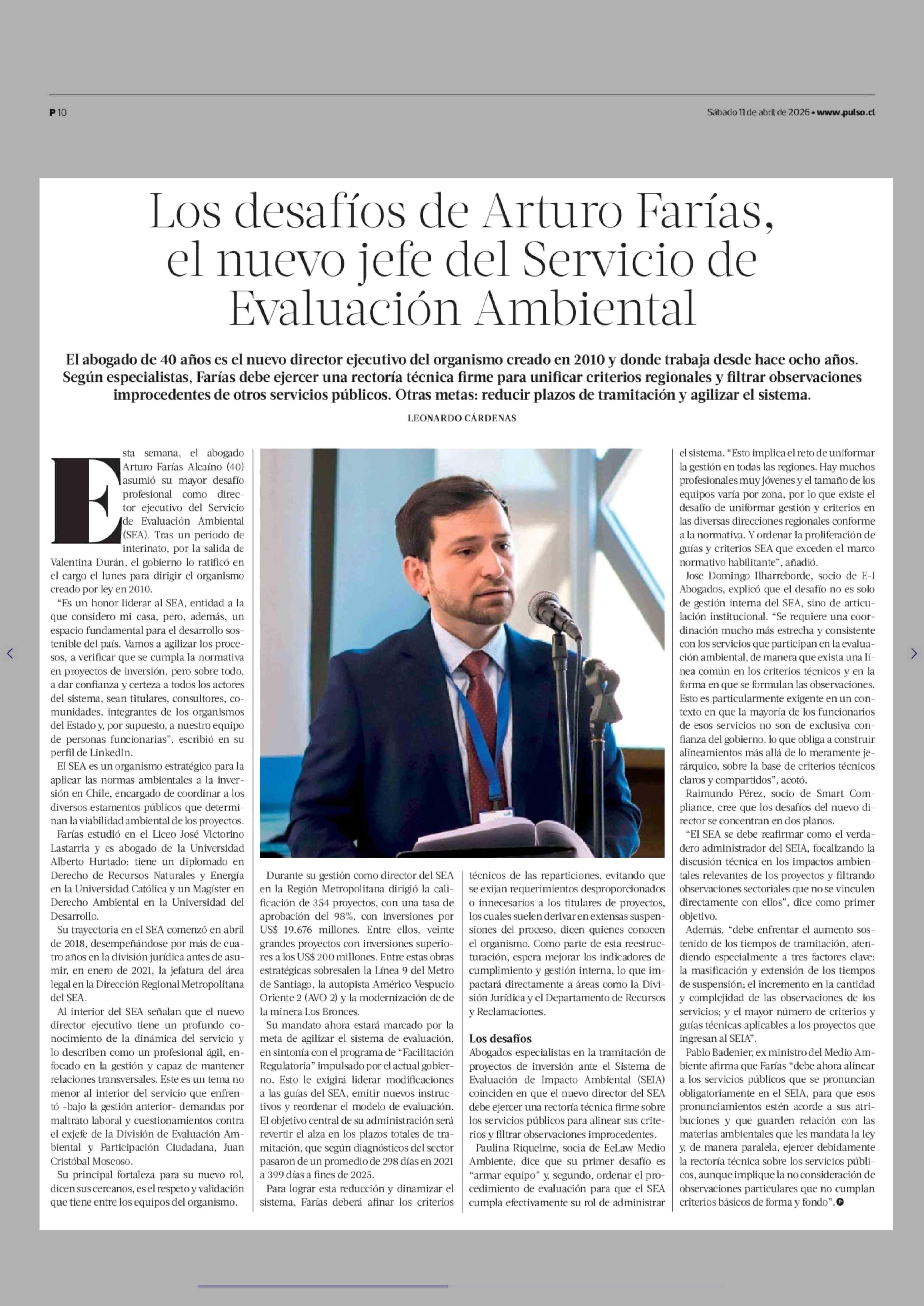 Los desafíos de Arturo Farías, el nuevo jefe del Servicio de Evaluación Ambiental 11-04-2026 La Tercera |