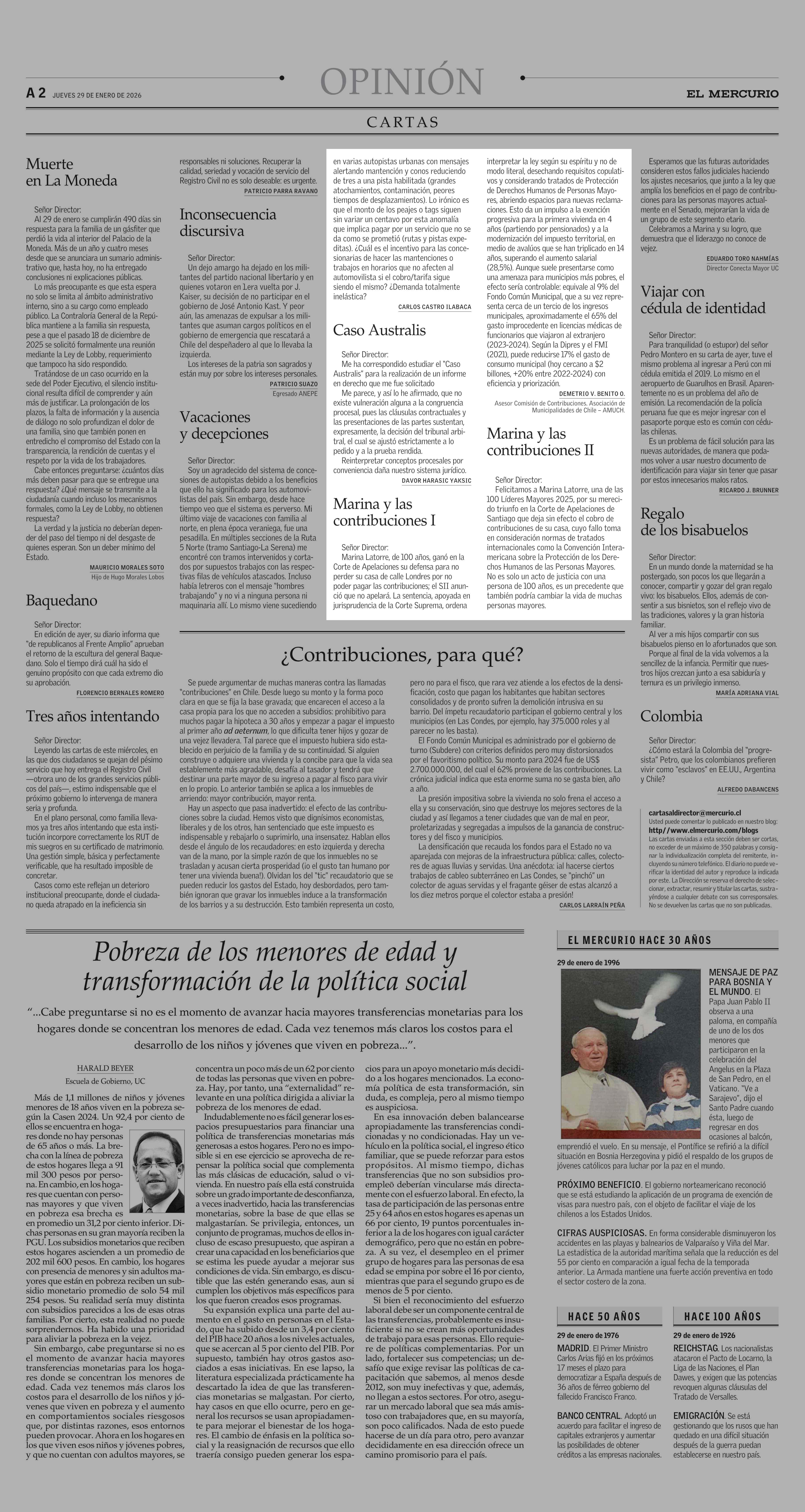 Cartas: Marina y las contribuciones I 29-01-2026 El Mercurio |