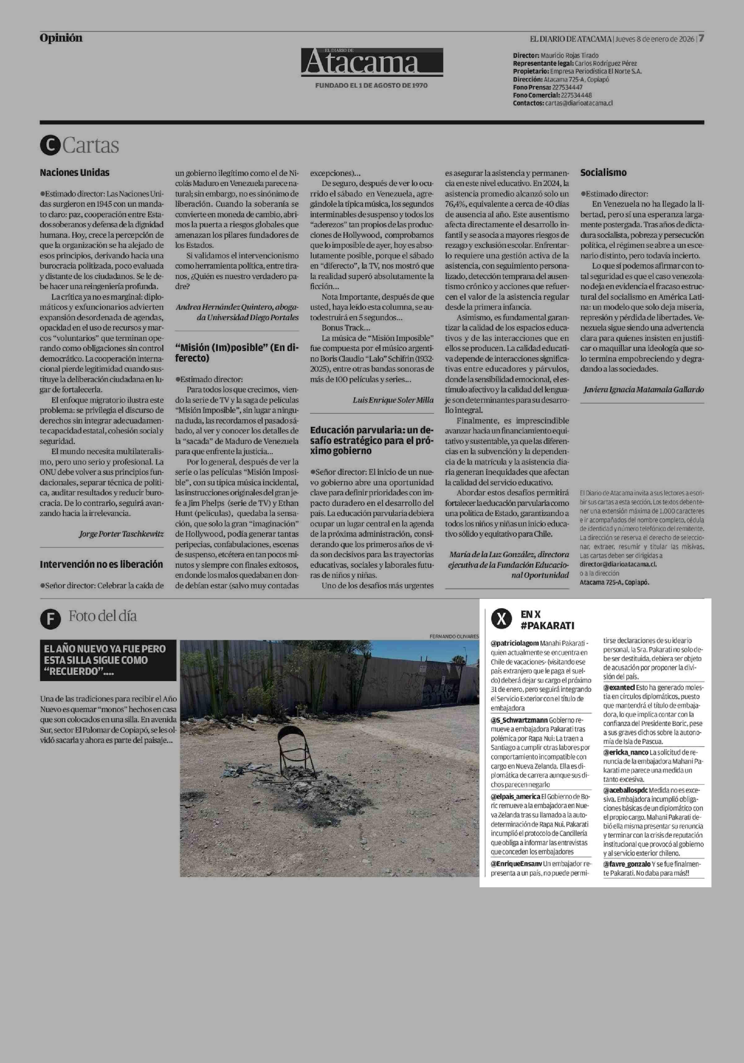 EN XX #PAKARATI 08-01-2026 El Diario de Atacama |