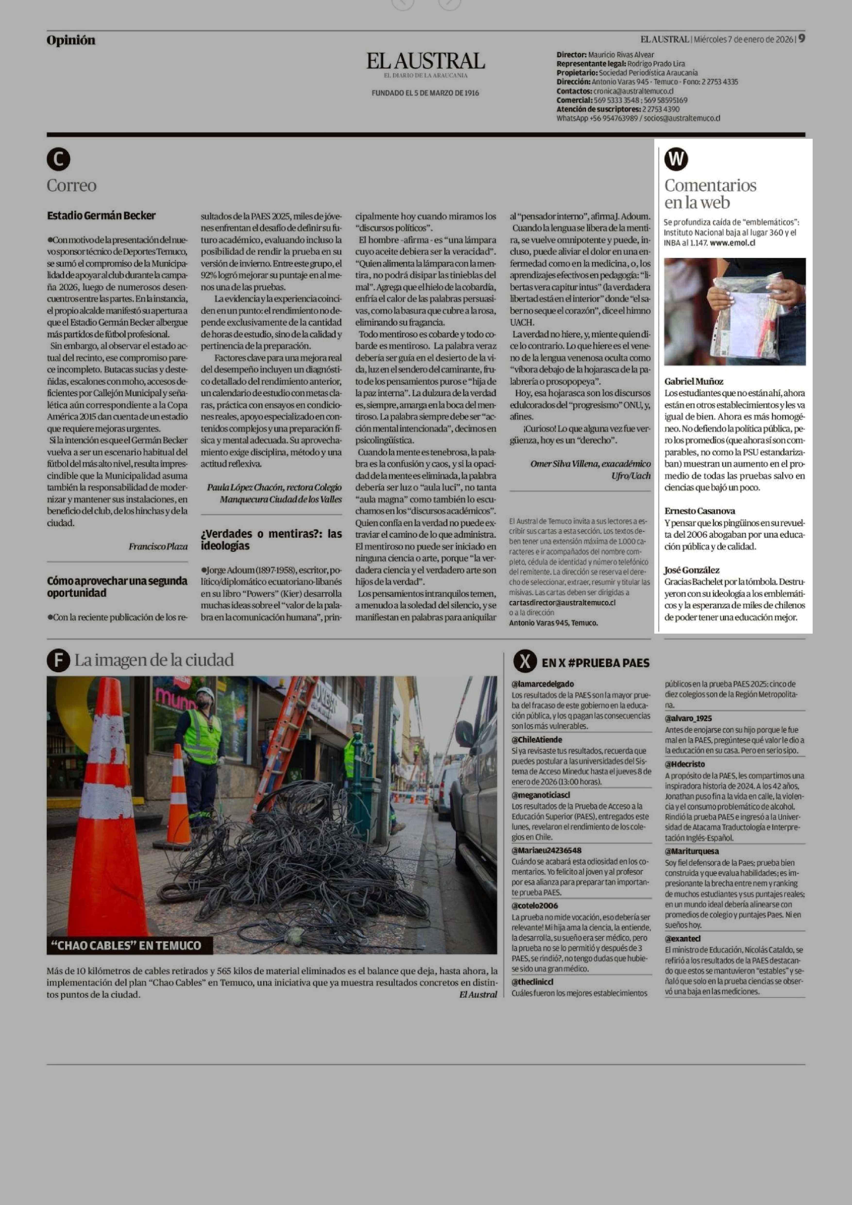 W Comentarios en la web 07-01-2026 El Austral de la Araucanía |