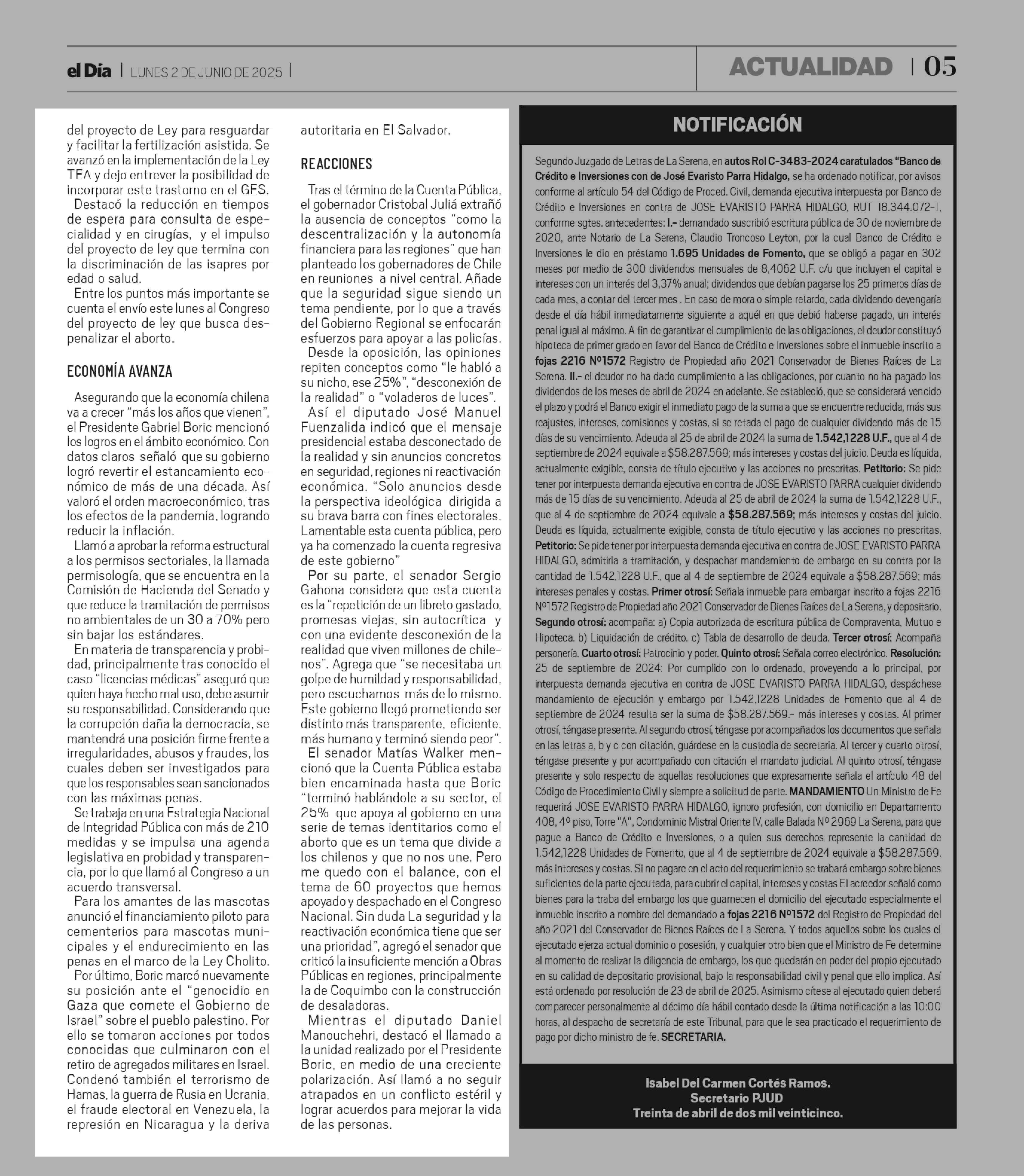 Boric realiza última Cuenta Pública llamando a la unidad y sin anuncios regionales 02-06-2025 El Día |