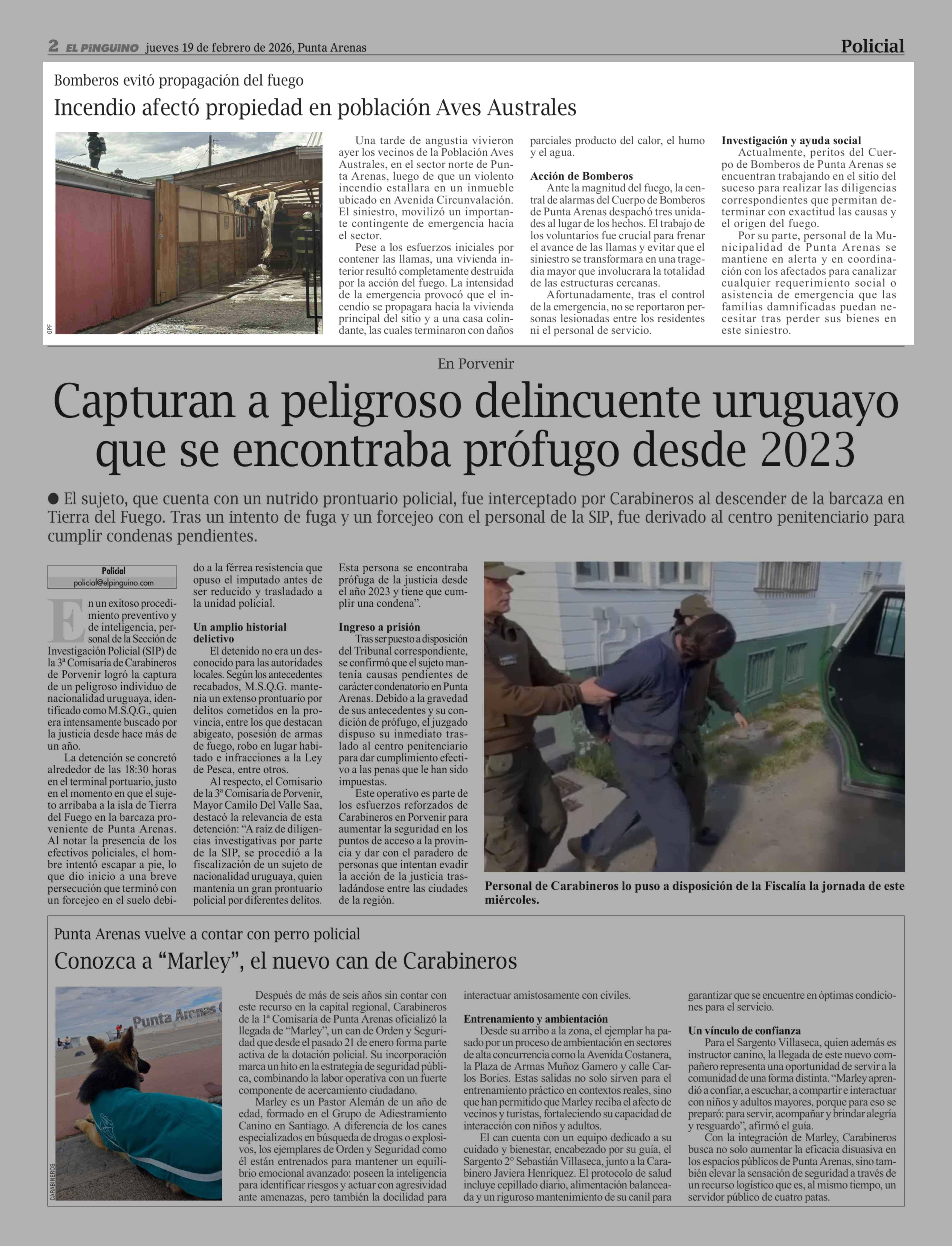 | Fecha: | 19-02-2026 | Sector: | Noticia general | Región: | Región de Magallanes y de la Antártica Chilena |