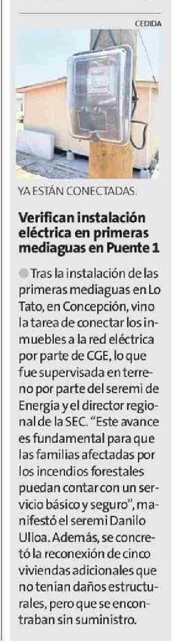 Verifican instalación eléctrica en primeras mediaguas en Puente 1 24-01-2026 La Estrella de Concepción |