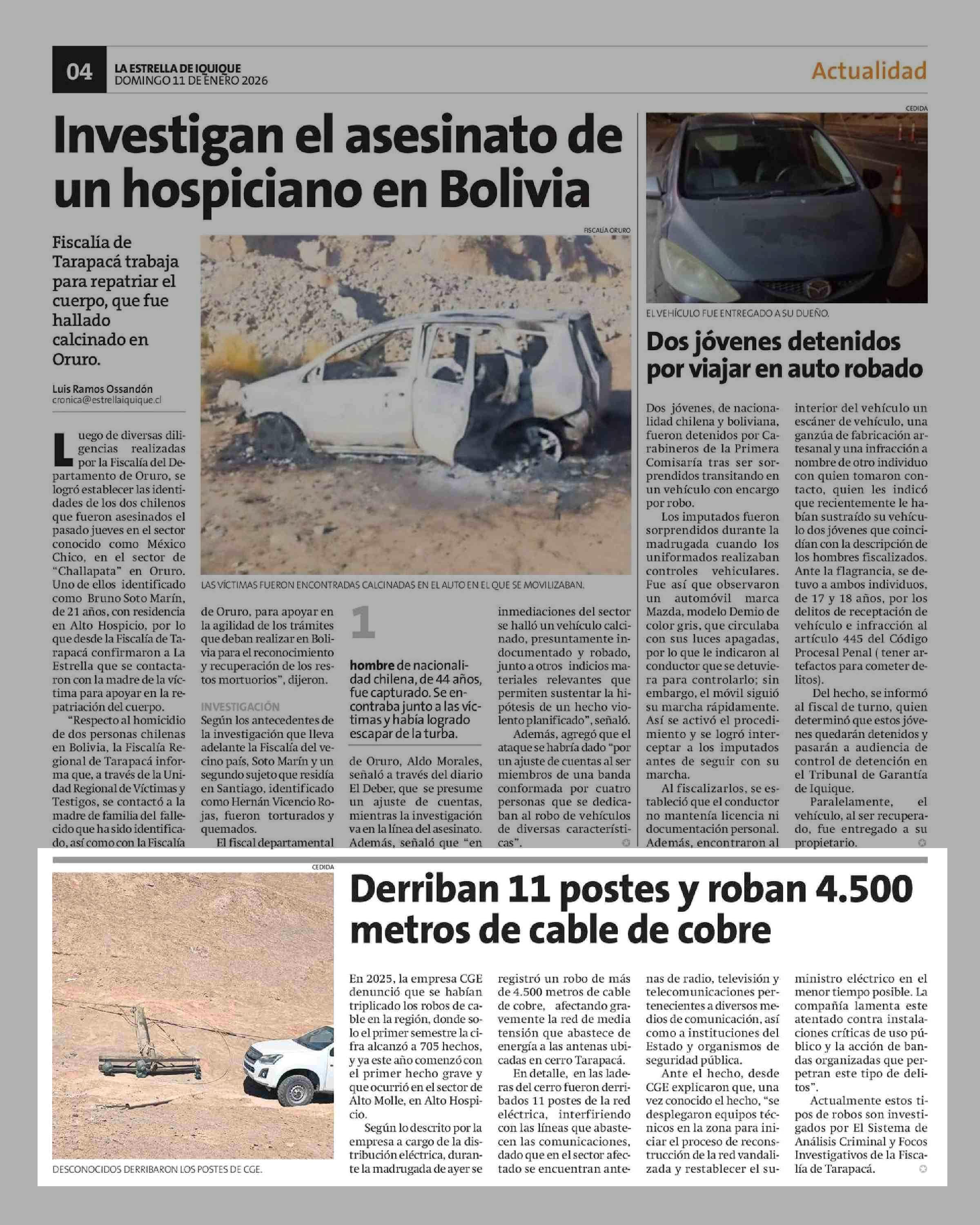 Derriban 11 postes y roban 4.500 metros de cable de cobre 11-01-2026 La Estrella de Iquique |