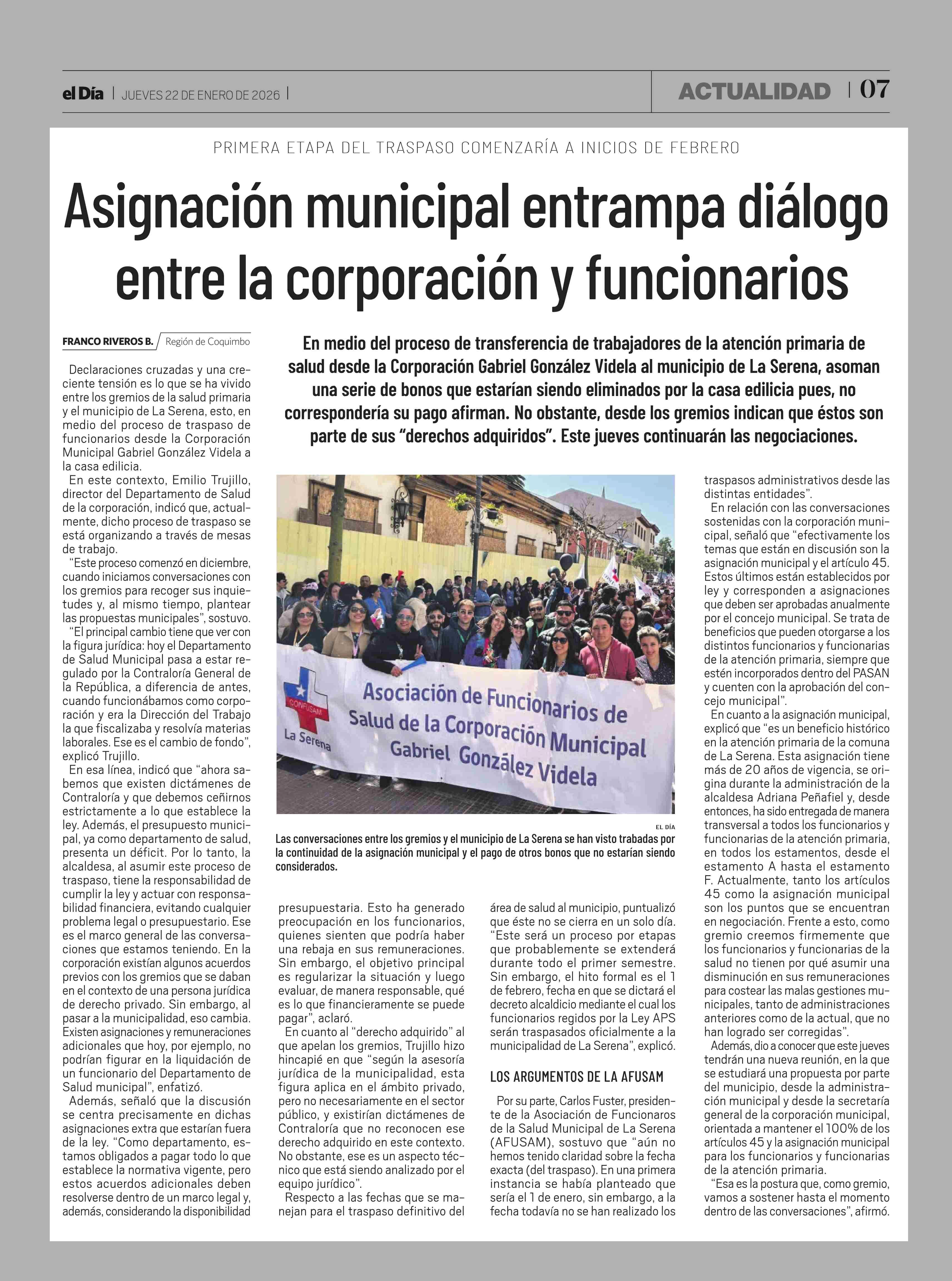 Título: Asignación municipal entrampa diálogo entre la corporación y funcionarios