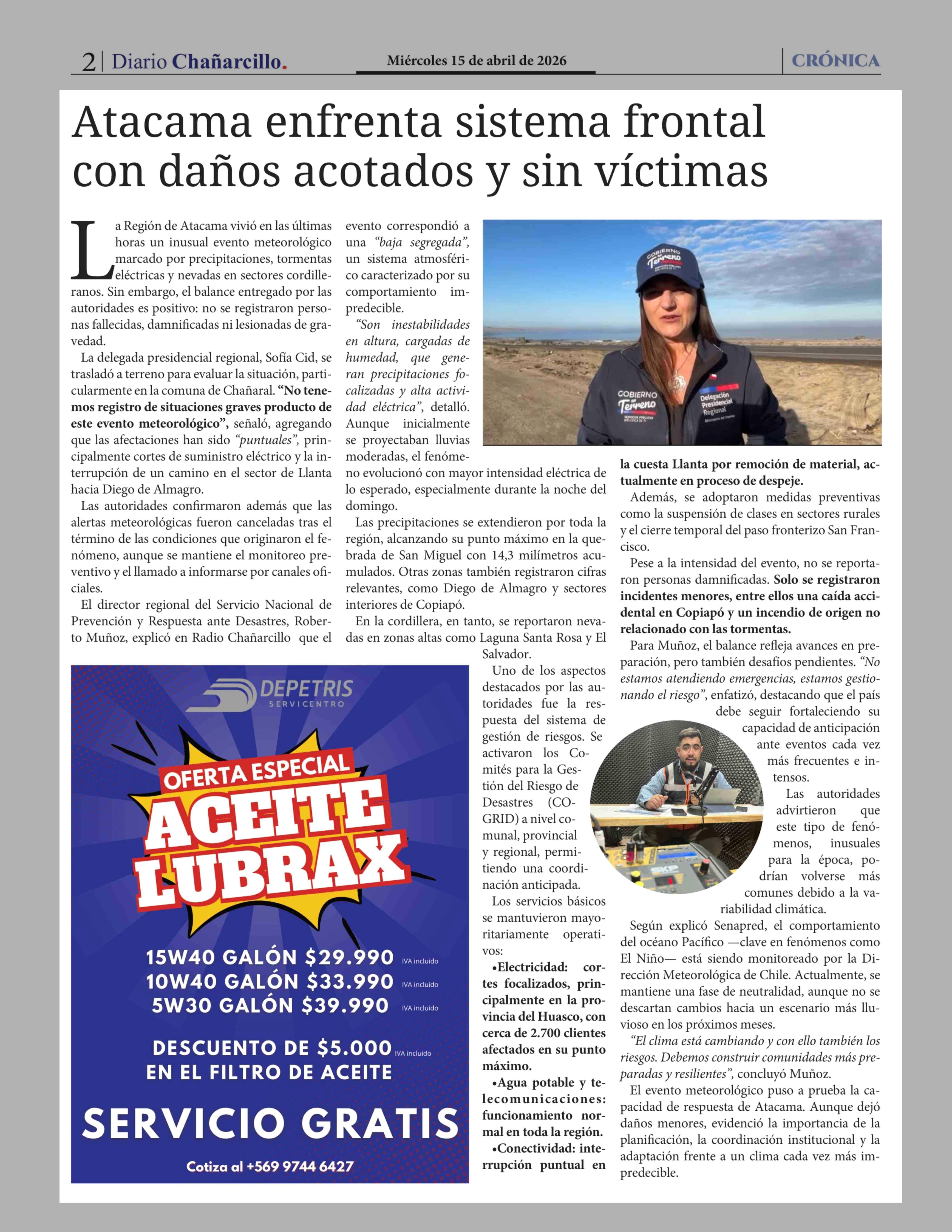 Atacama enfrenta sistema frontal con daños acotados y sin víctimas 15-04-2026 Diario Chañarcillo |