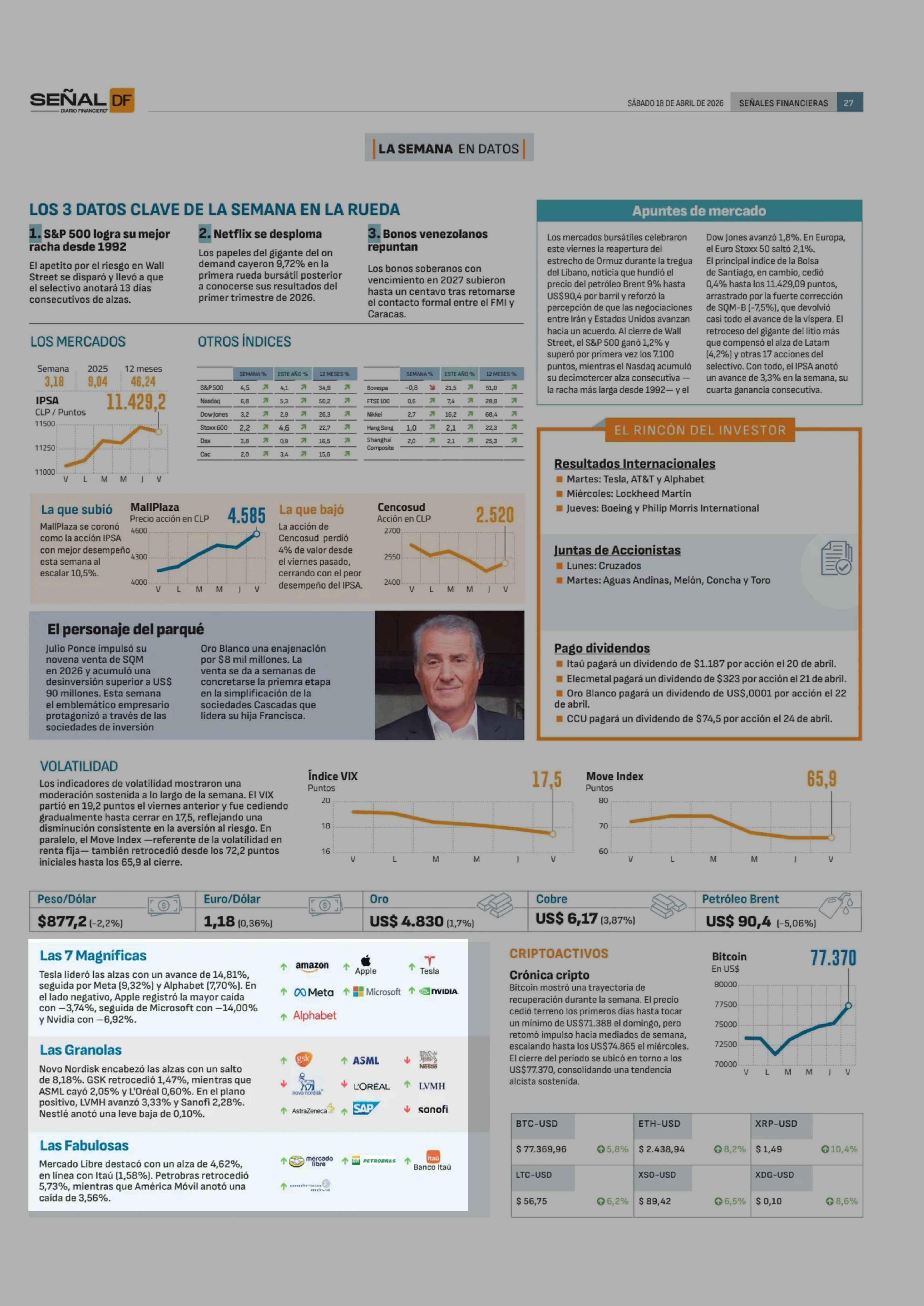 Fuente: Diario Financiero (Diario Financiero - Señal DF Sabado) Página(s): 27
