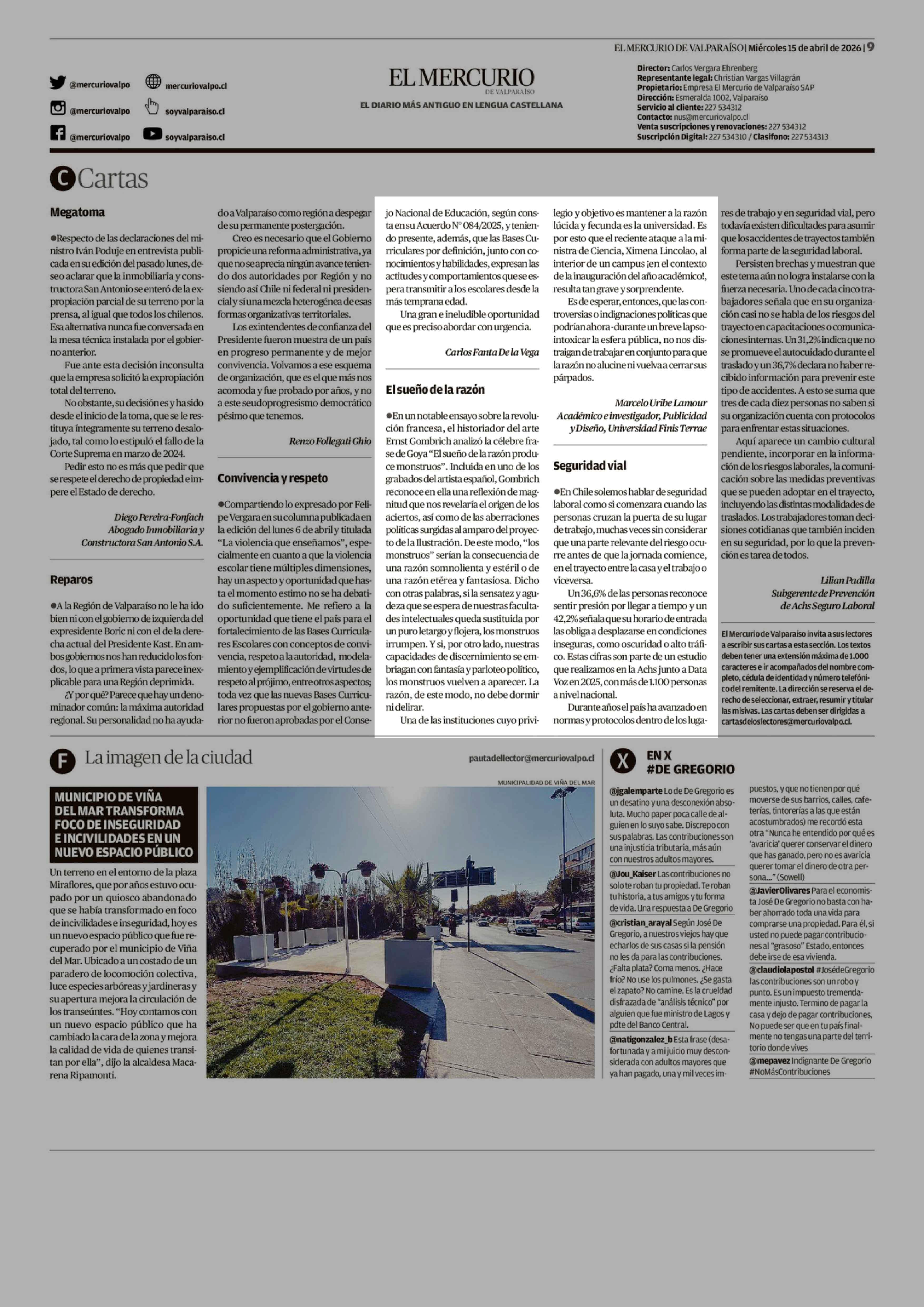 Cartas: El sueño de la razón 15-04-2026 El Mercurio de Valparaíso |