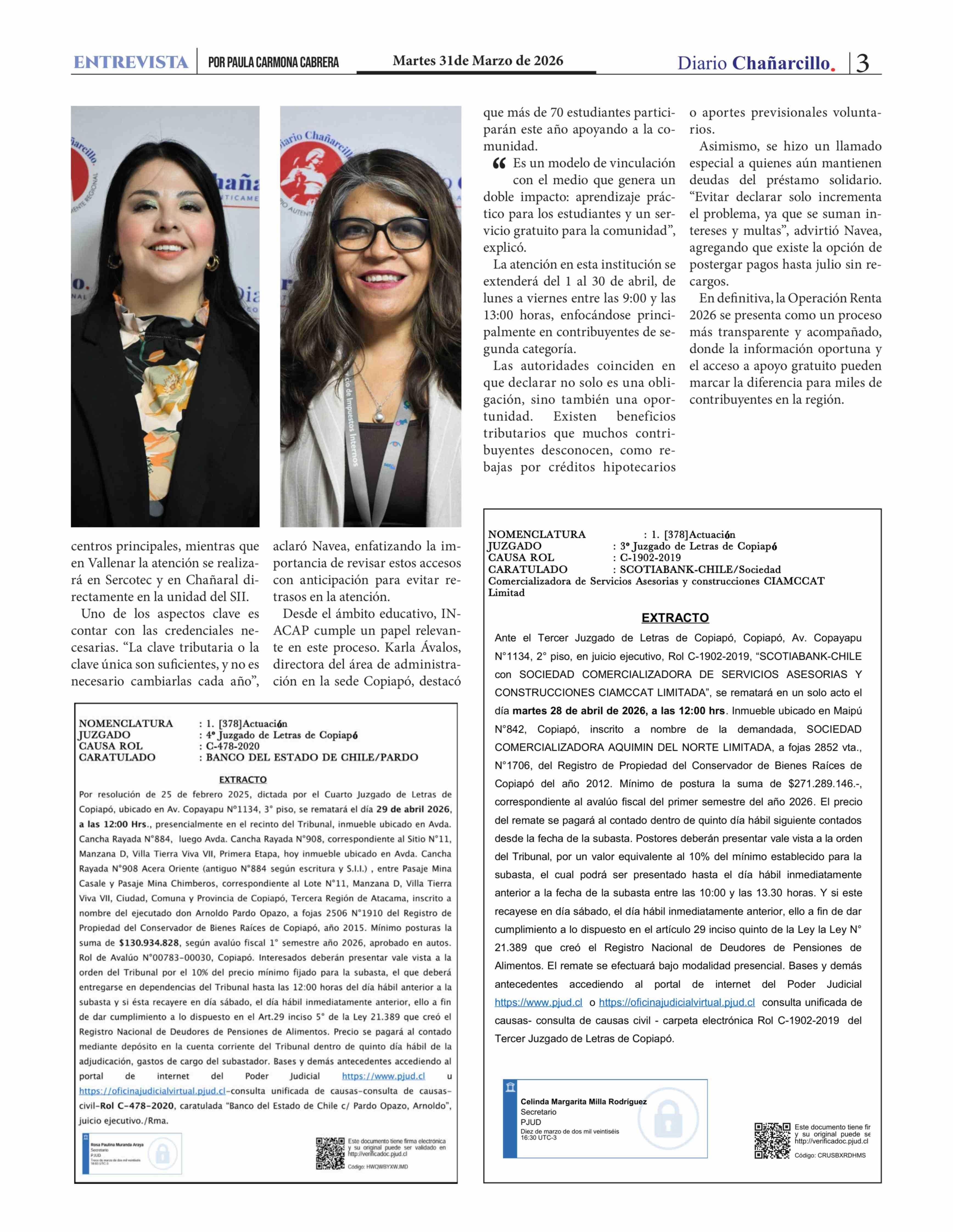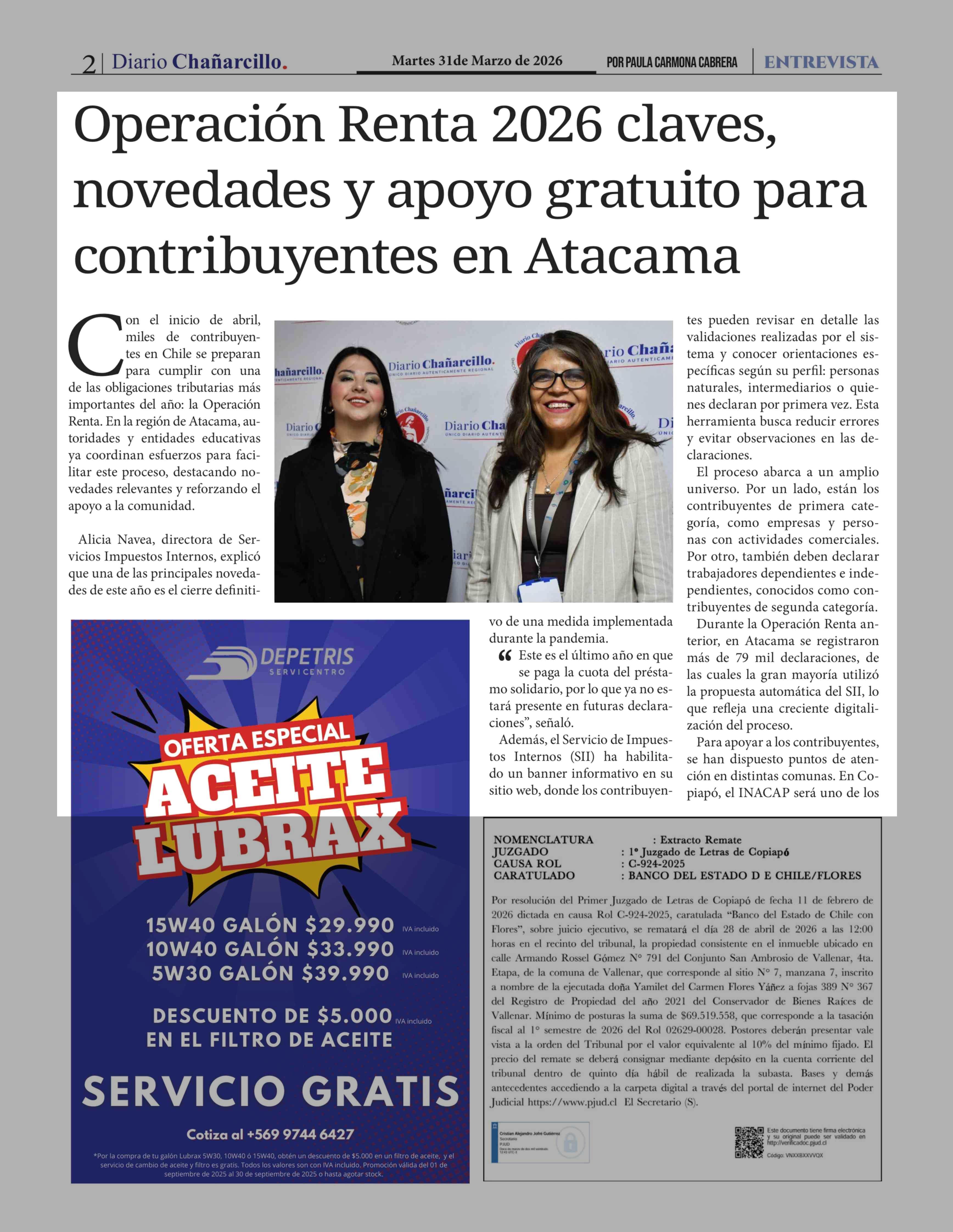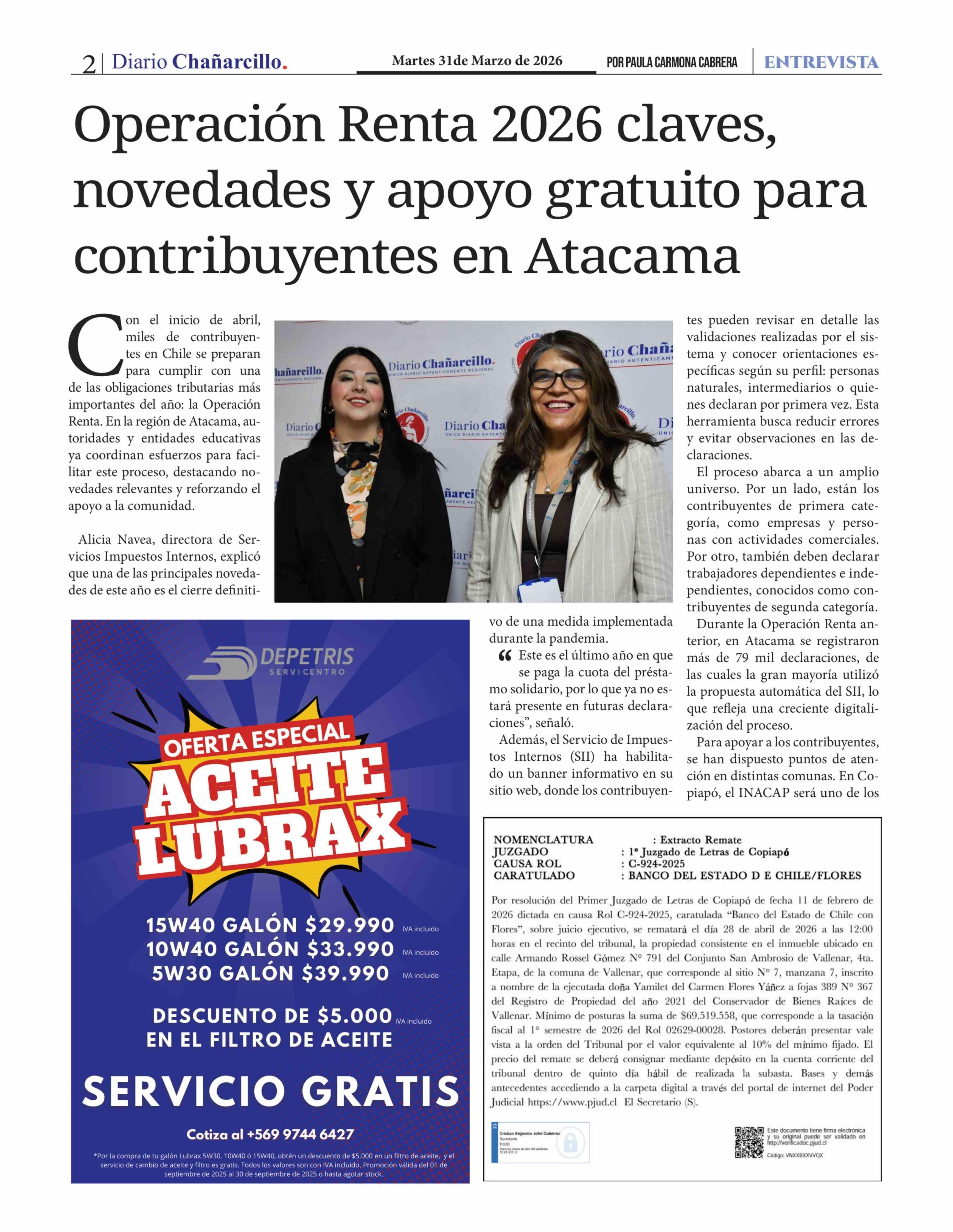 Operación Renta 2026 claves, novedades y apoyo gratuito para contribuyentes en Atacama 31-03-2026 Diario Chañarcillo |