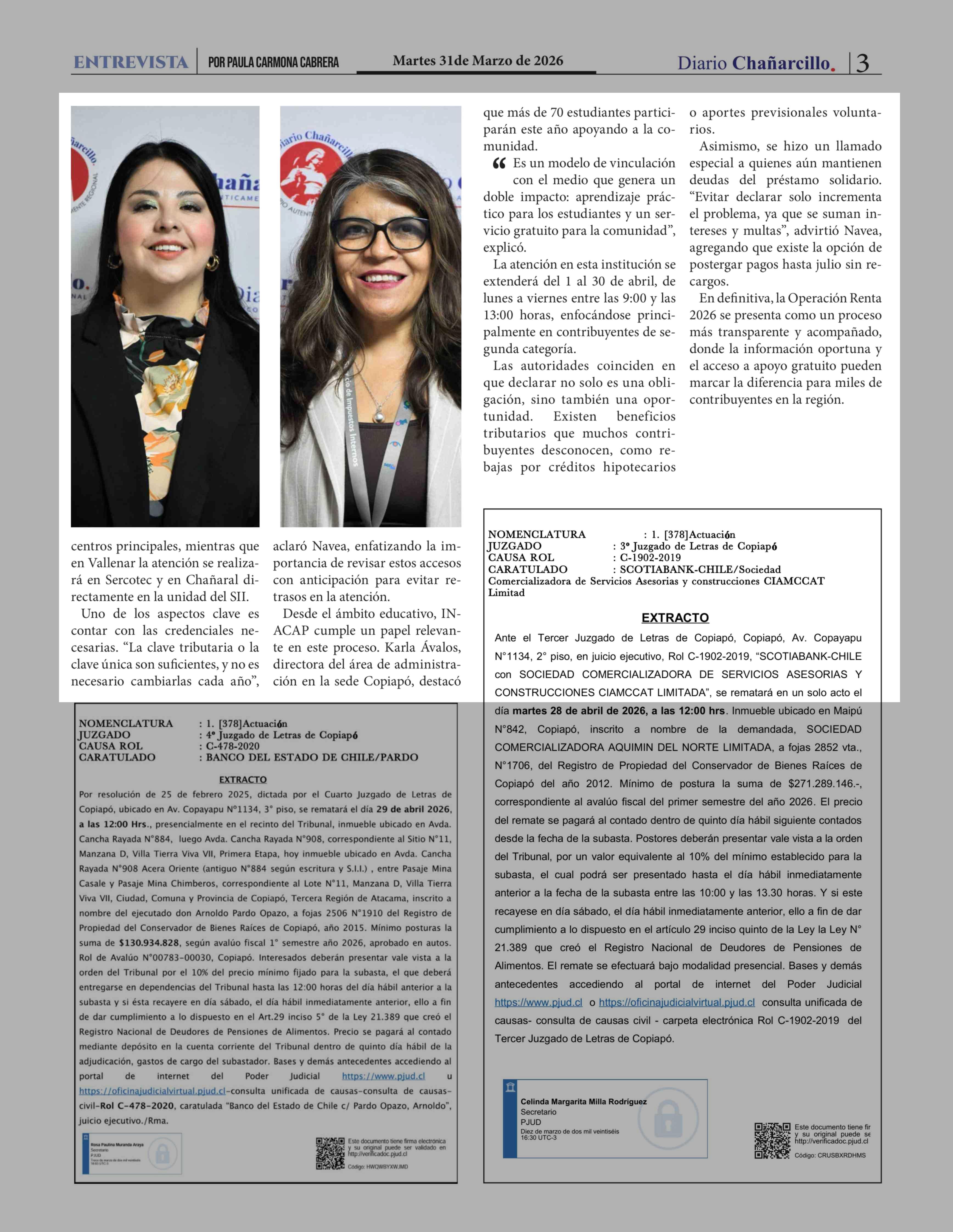 | Fecha: | 31-03-2026 | Sector: | Noticia general | Región: | Región de Atacama |
