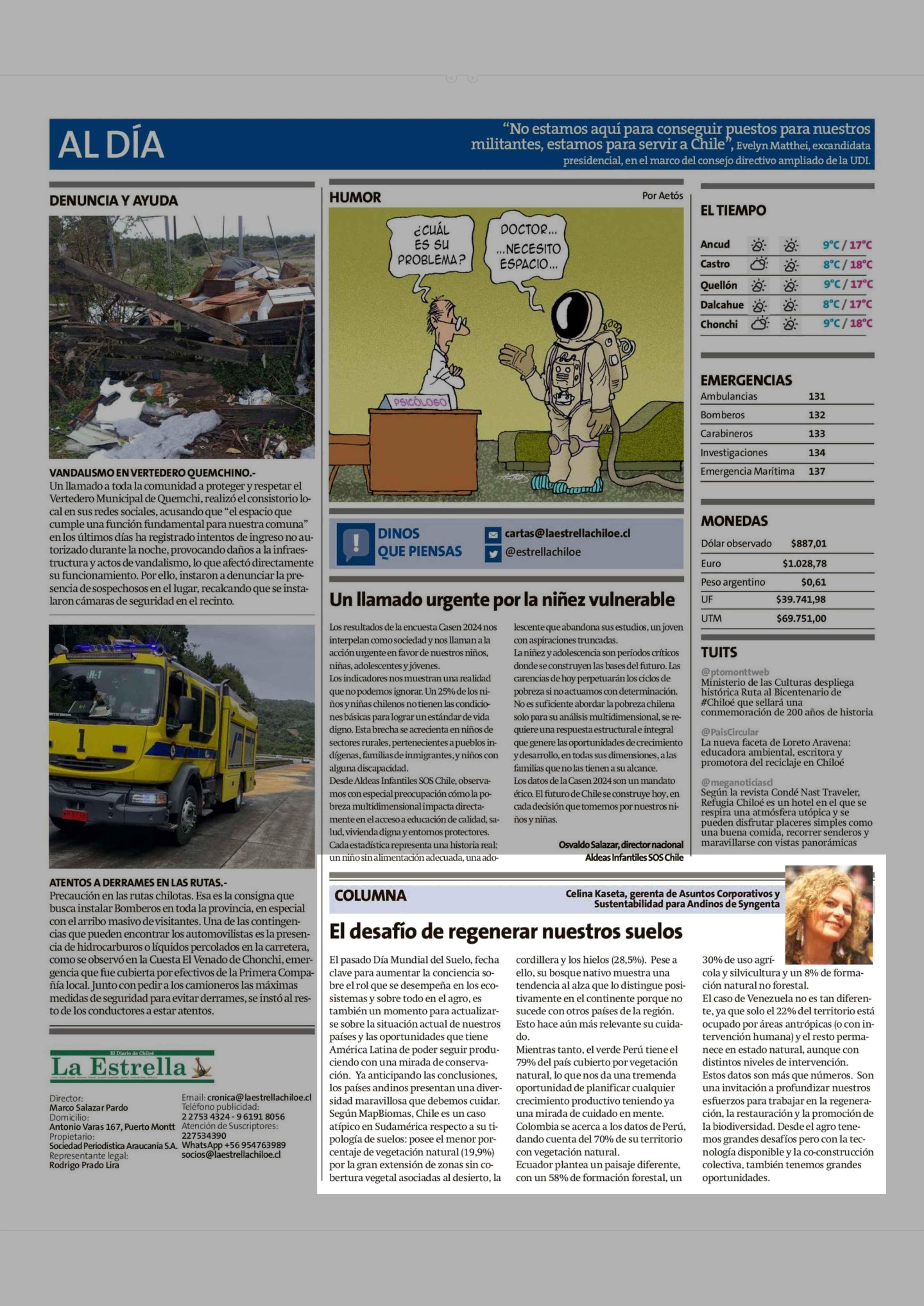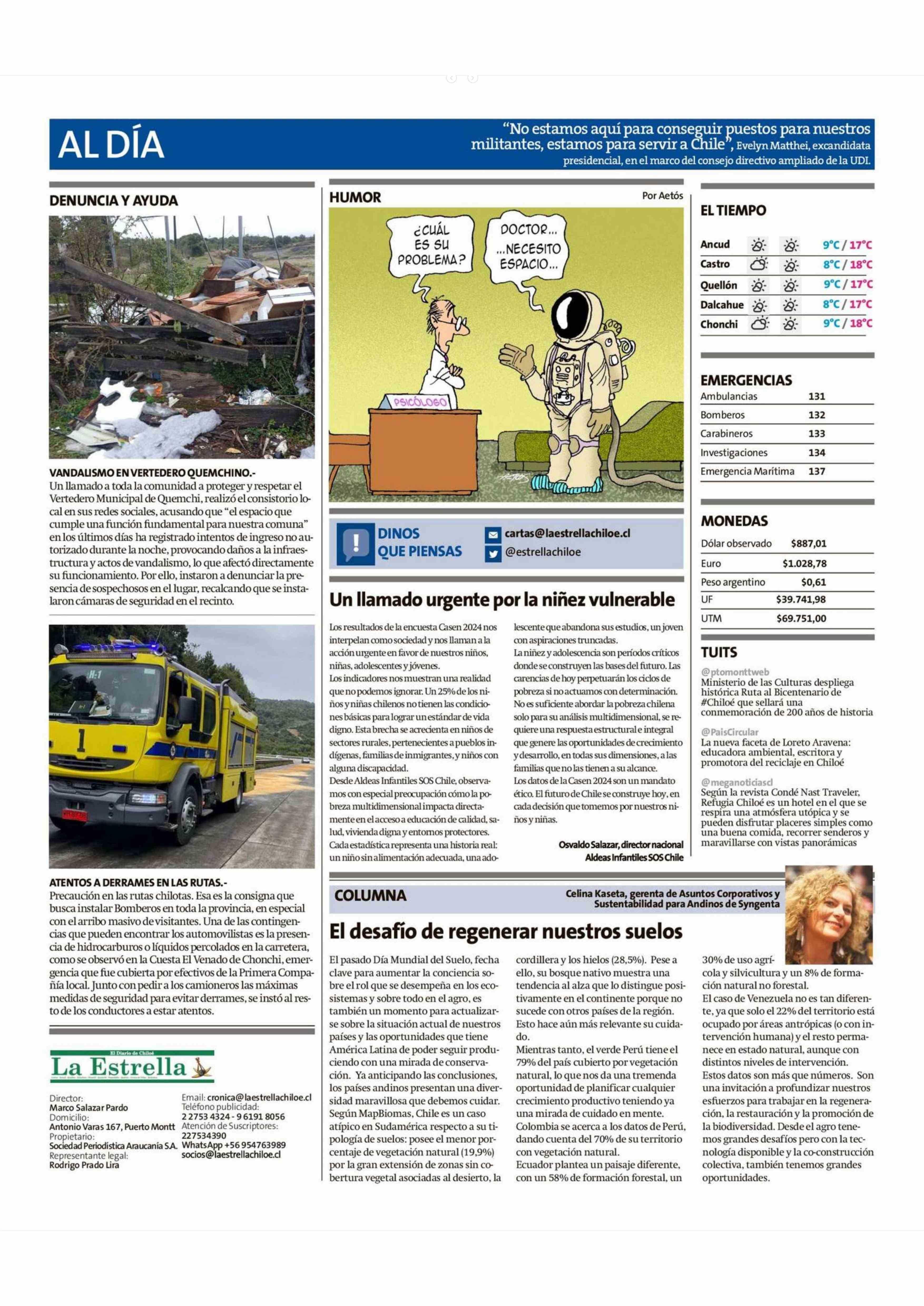 Columnas de Opinión: El desafío de regenerar nuestros suelos 17-01-2026 La Estrella de Chiloé |