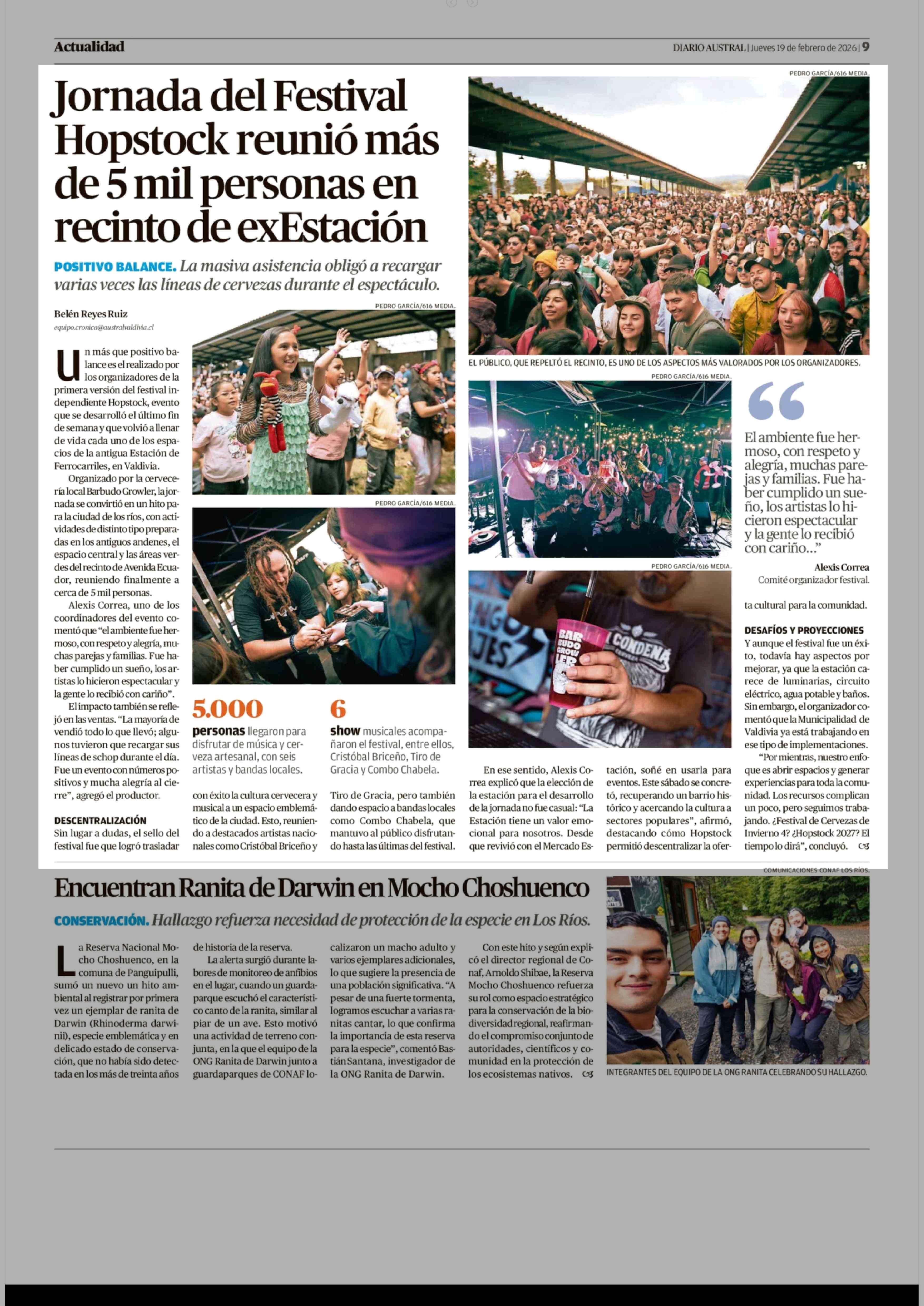 Jornada del Festival Hopstock reunió más de 5 mil personas en recinto de exEstación 19-02-2026 Diario Austral Región de Los Ríos |