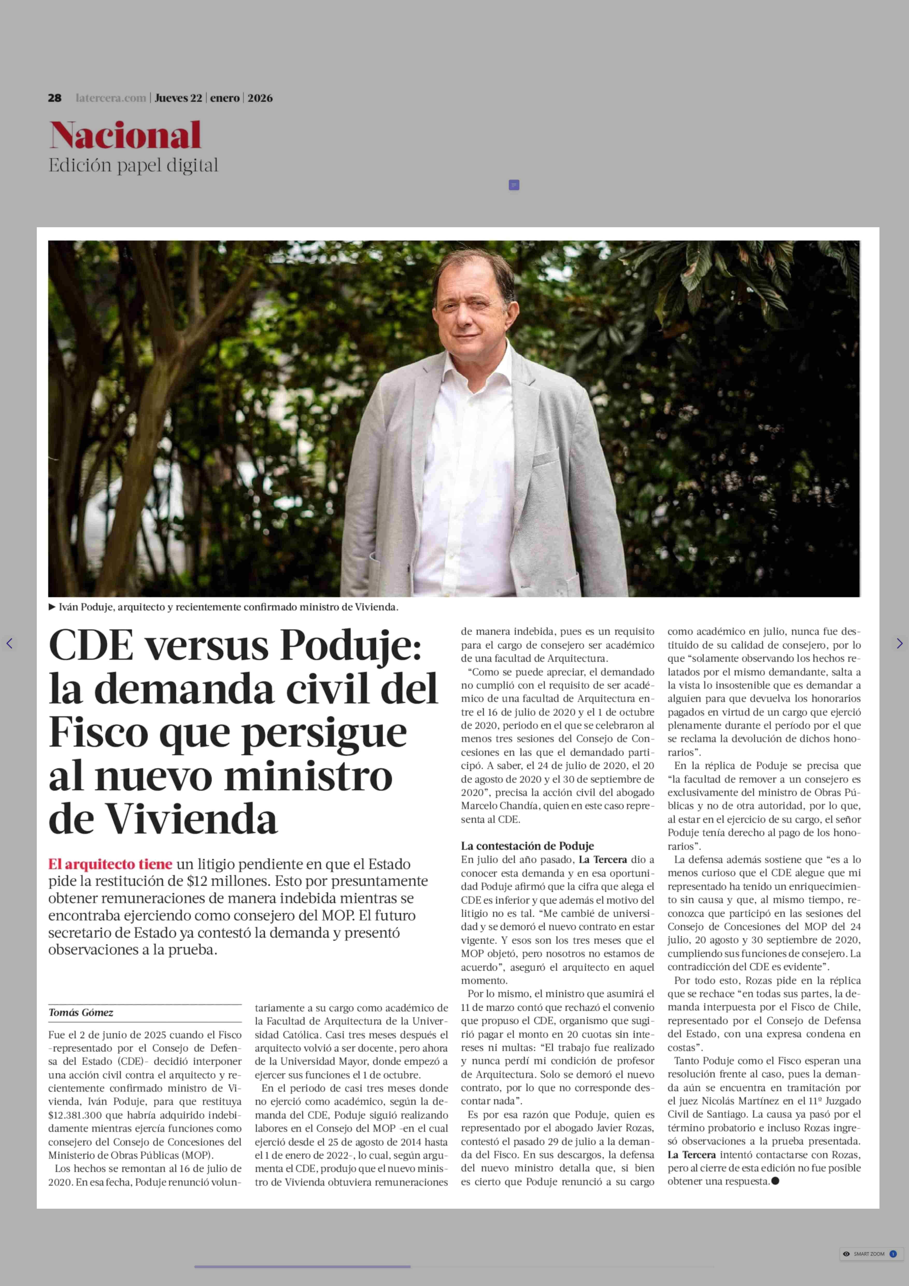 Título: CDE versus Poduje: la demanda civil del Fisco que persigue al nuevo ministro de Vivienda