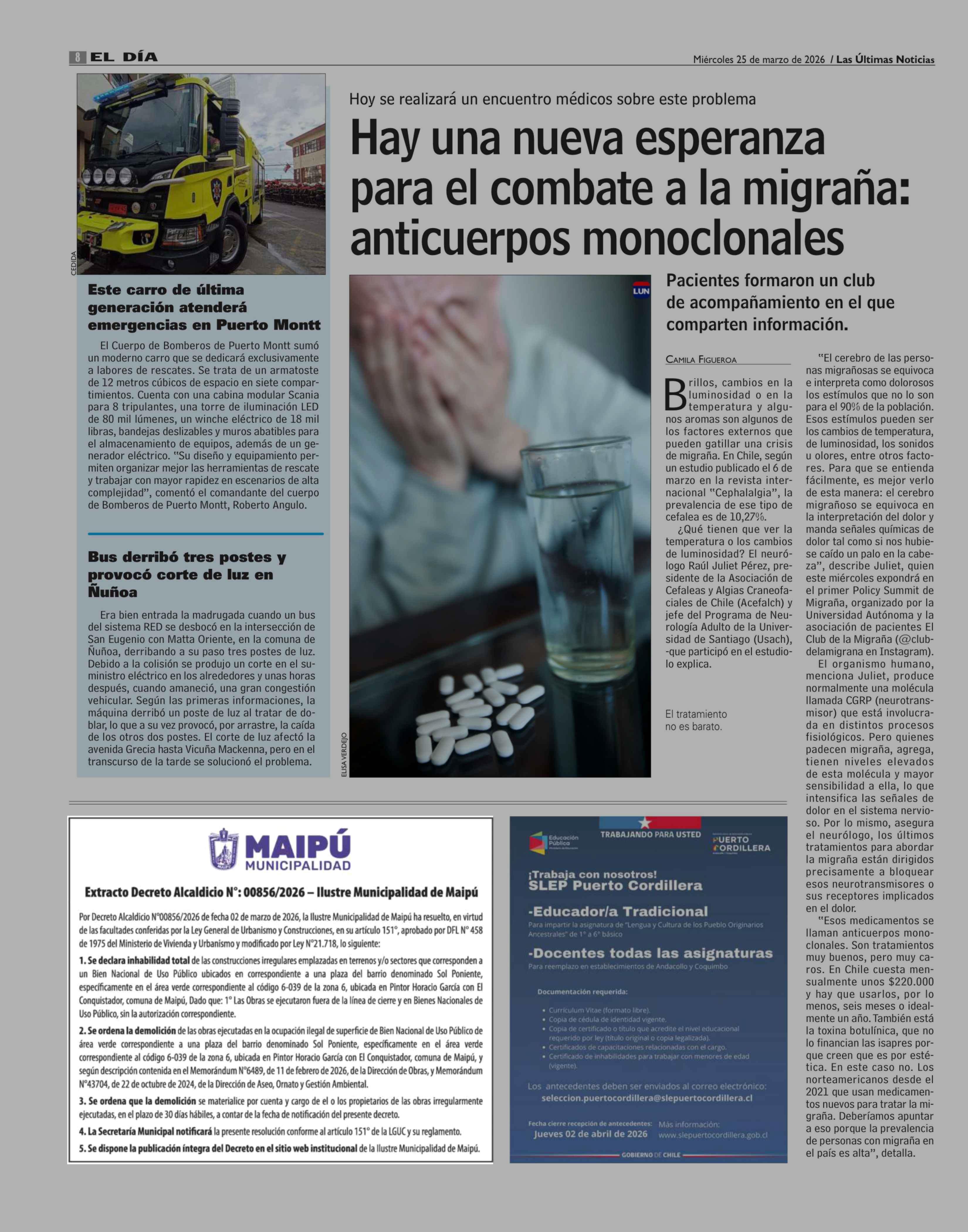 Extractos: MUNICIPALIDAD DE MAIPÚ 25-03-2026 Las Últimas Noticias |