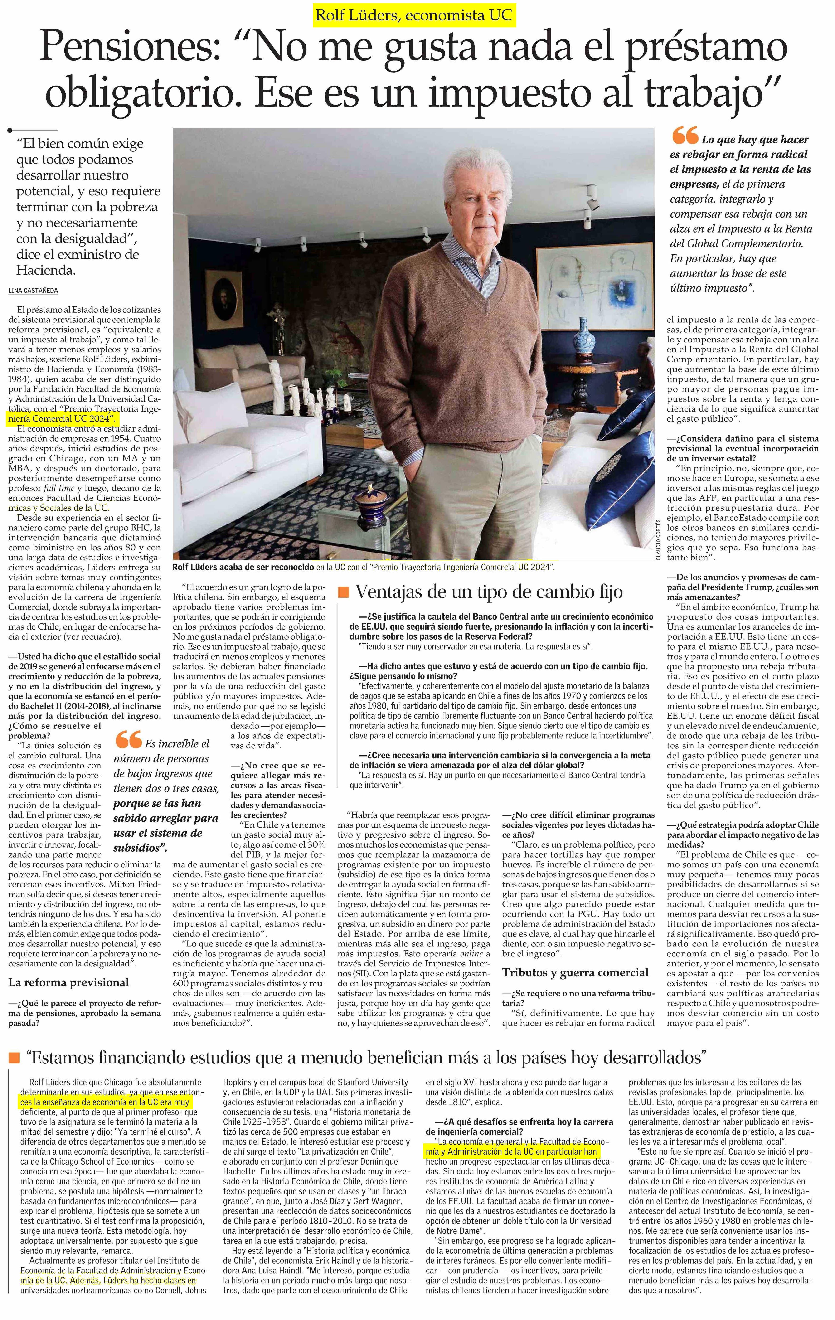 Pensiones: “No me gusta nada el préstamo obligatorio. Ese es un impuesto al trabajo” 06-02-2025 El Mercurio |
