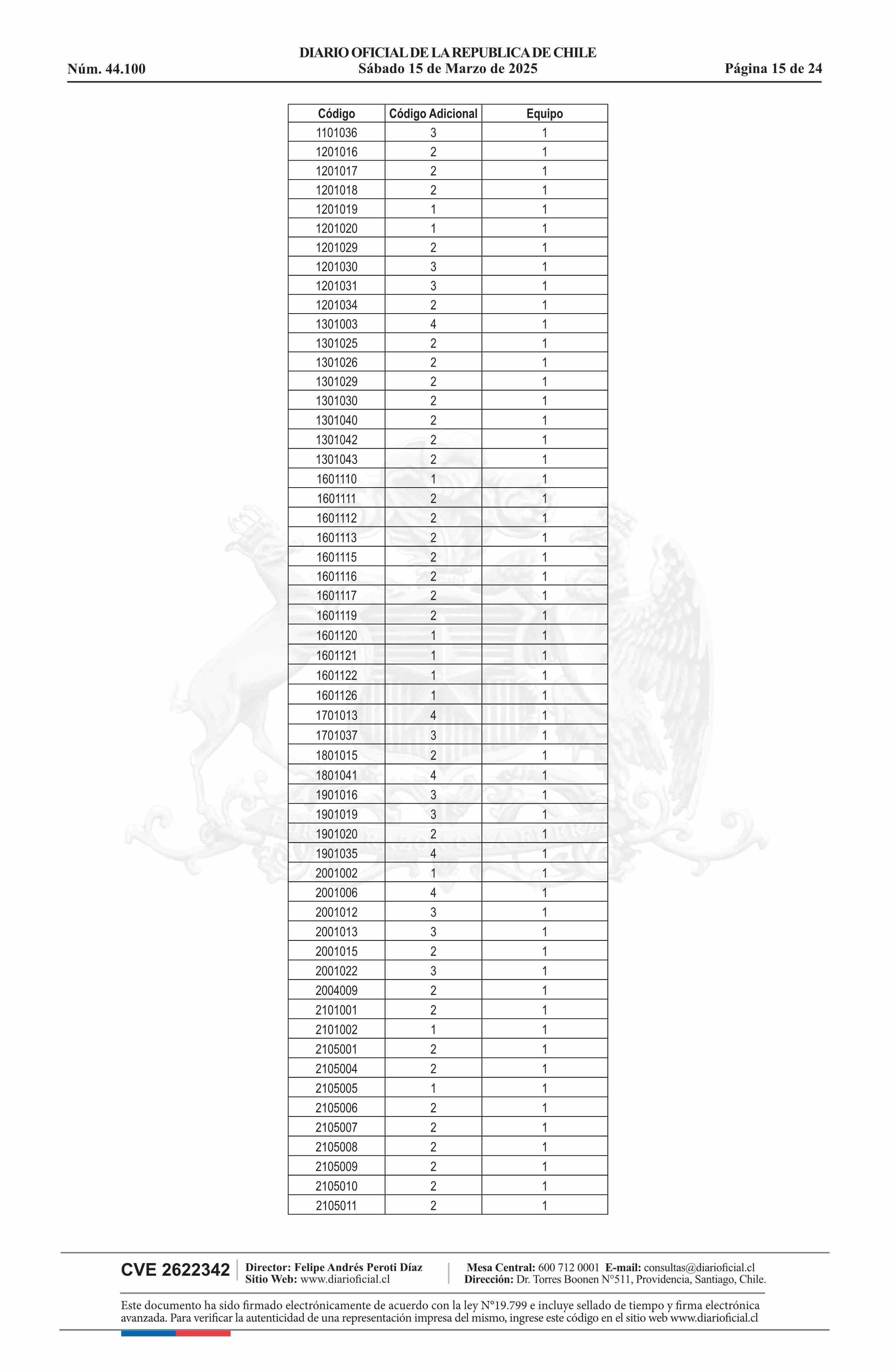 | Fuente: | Diario Oficial Edición Electrónica (Diario Oficial de Chile - 2 Normas Particulares) | Página(s): | 3-26 |