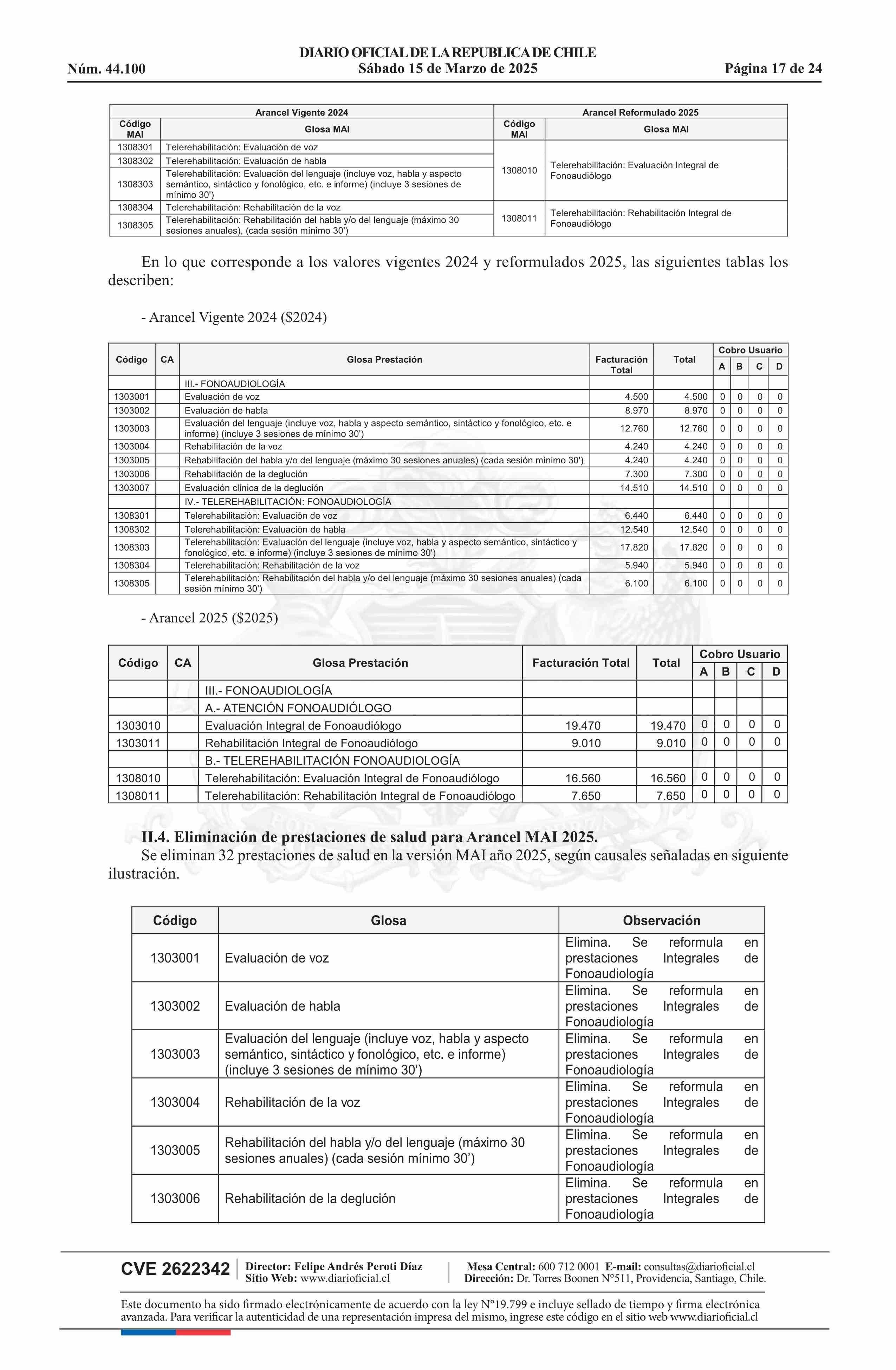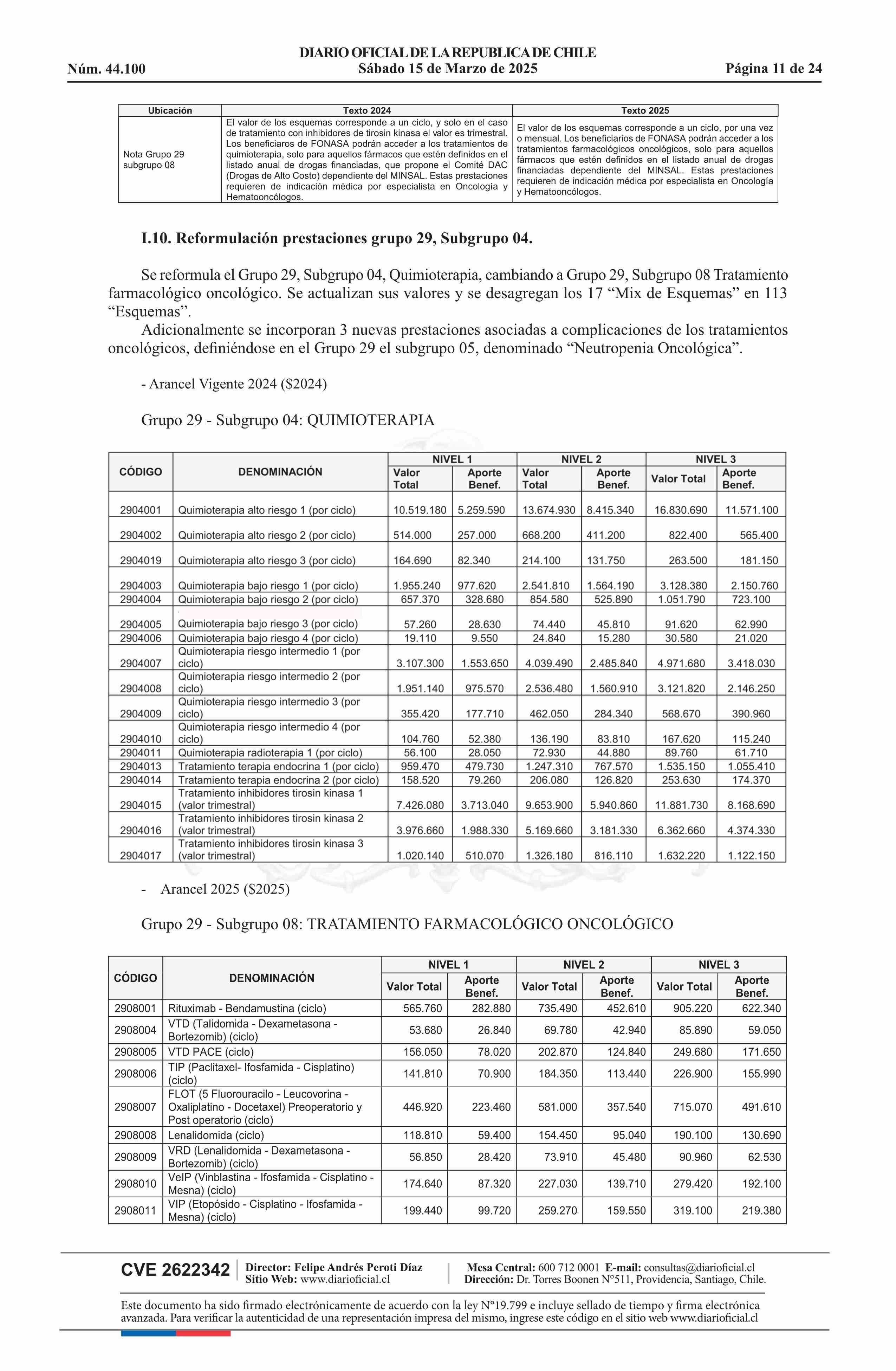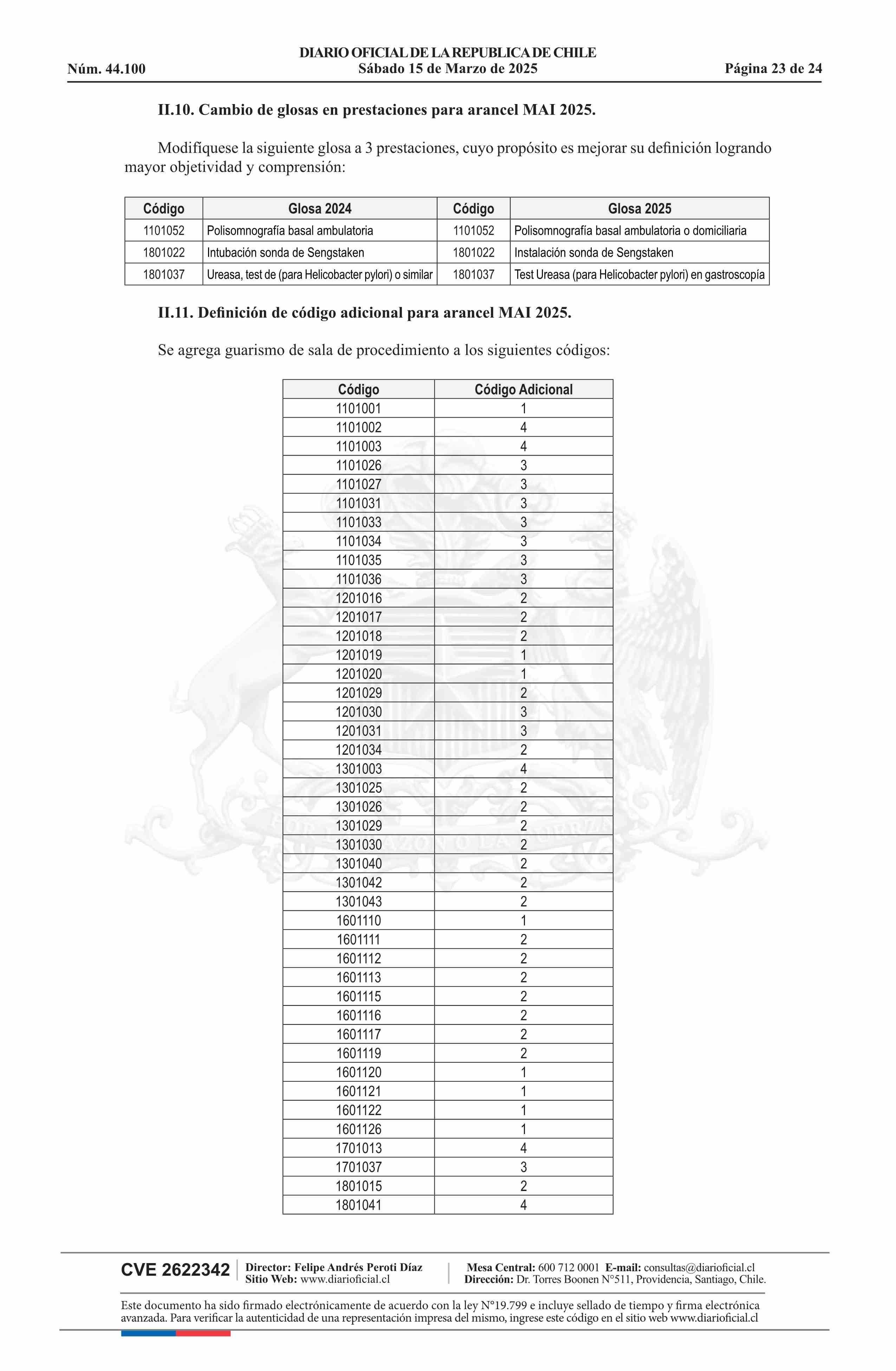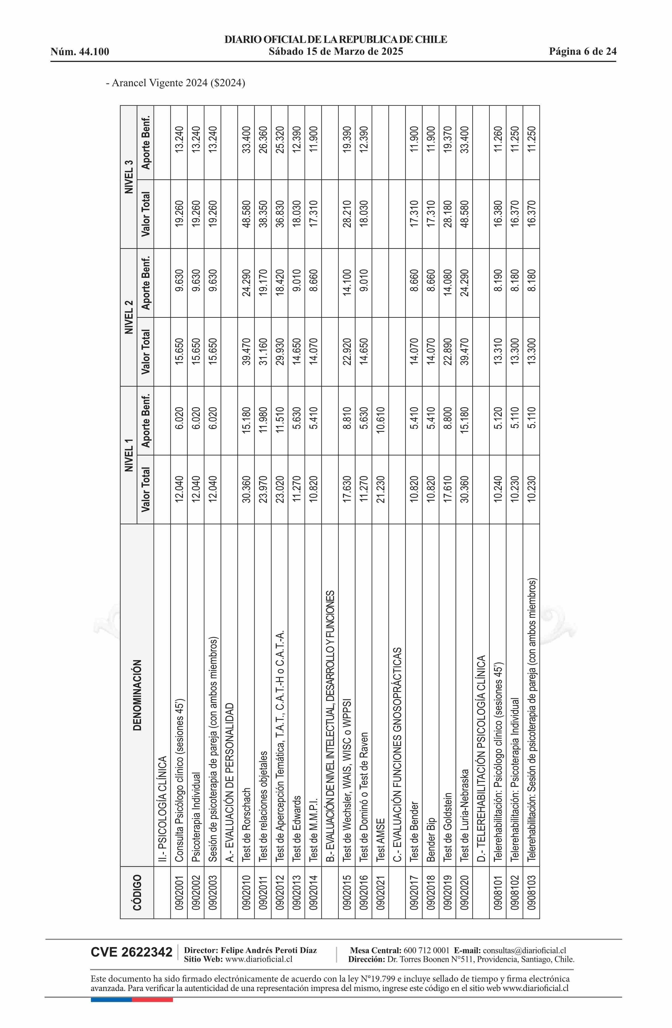 Resolución exenta número 173, de 2025.- Modifica resolución N° 176 exenta, de 1999, que aprueba el Arancel de Prestaciones de Salud, del decreto con fuerza de ley N° 1 de 2005 15-03-2025 Diario Oficial Edición Electrónica |